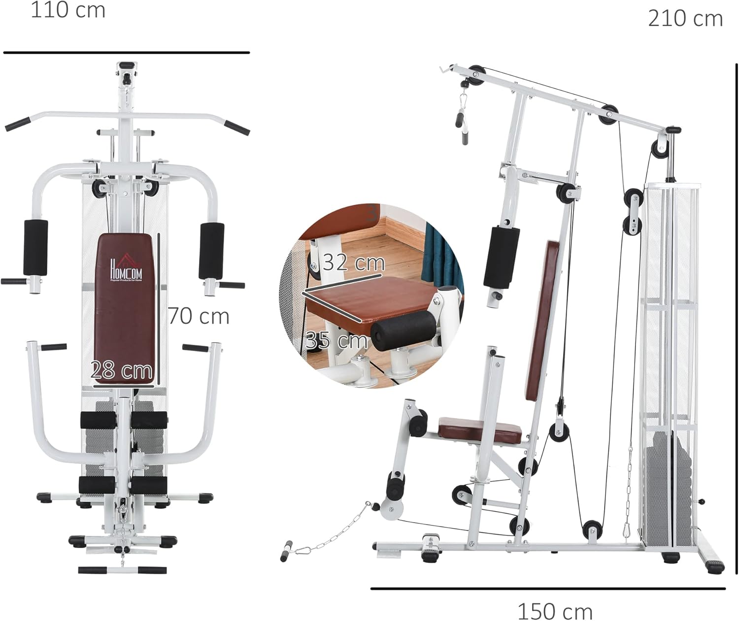 Comfortable leg developer: The multiple homes GYM equipment with 4 roller padding and a fully functional leg developer for a comfortable strength-training experience, the additional dual-function leg developer allows you to execute leg extensions