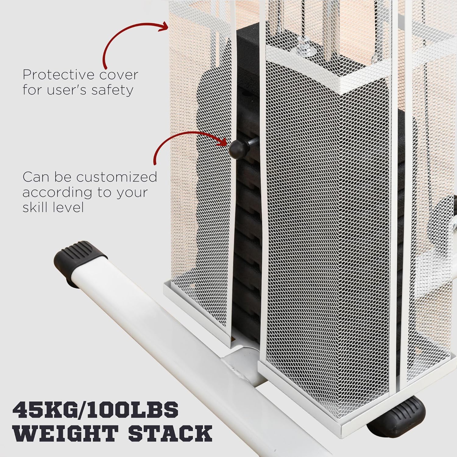 Sturdy construction: This home workouts station is made of a strong steel tube with a sturdy structure, the counterweight block protective by steel mesh guarantying your training to the greatest extent and provide you with a long time of service. Non-slip feet pad ensures the extra stability