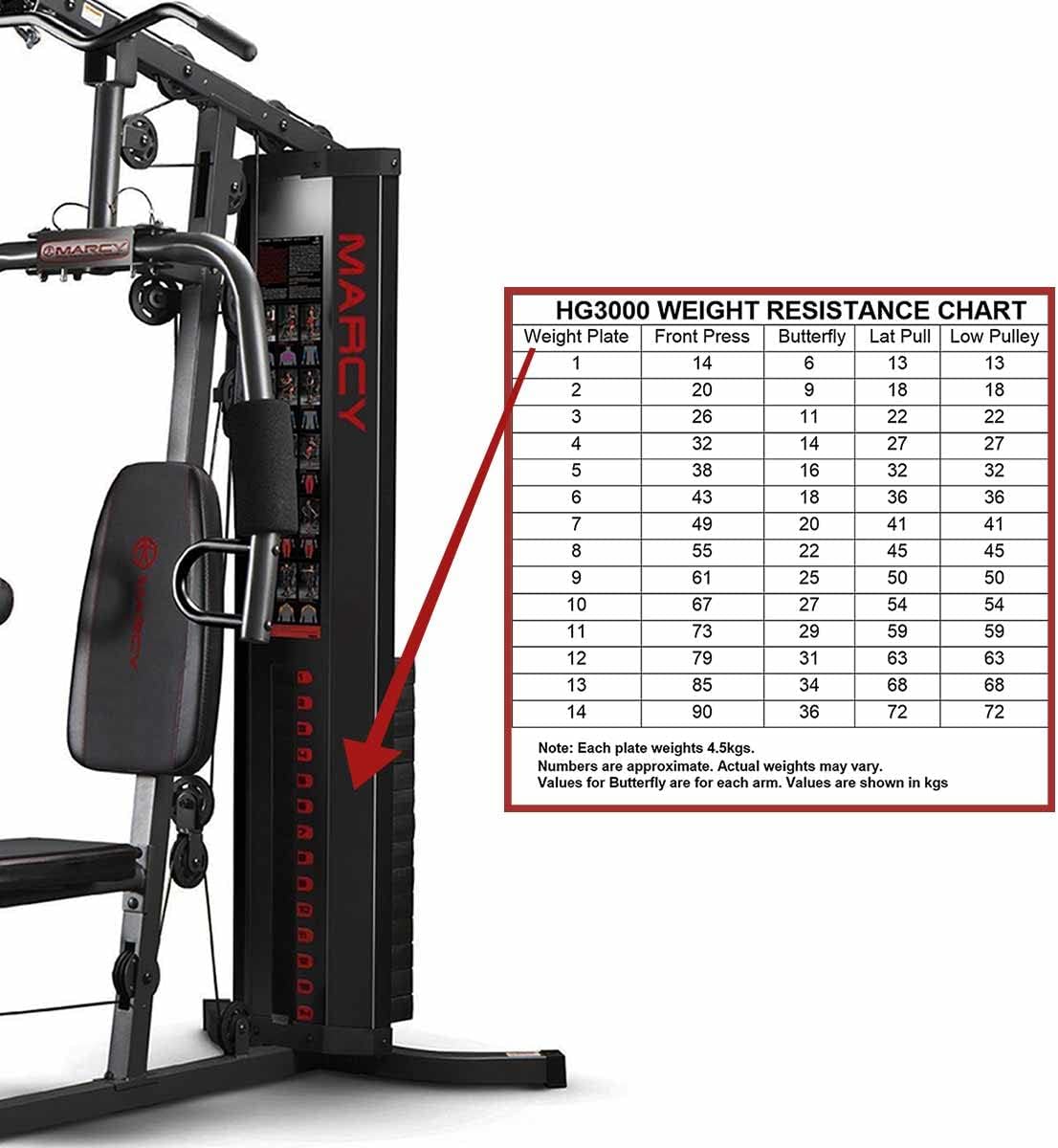 The chest press uses independent press arms to provide an equal resistance to both arms and can also double up as a pec dec too, the addition of a preacher pad and leg extensions covers your arms and legs for a complete body workout. The HG3000 happily displays a 68kg solid vinyl weight stack which should be more than enough for starters and intermediate weightlifters as well, as with all Marcy equipment only heavy gauge steel frame is used to ensure that dependable and durable feel.