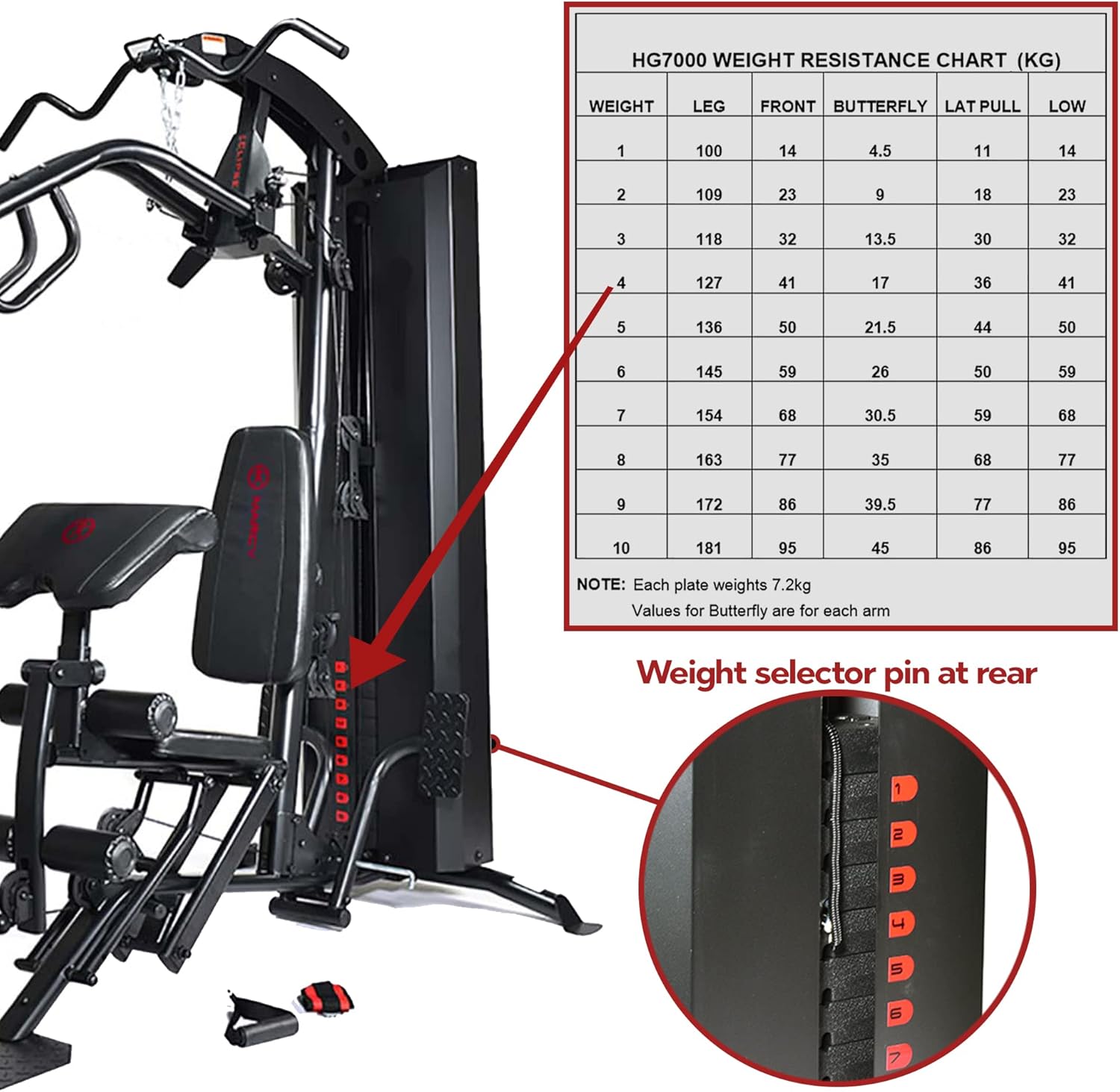 72 kg wieght stack generates 180 kg of resistance
