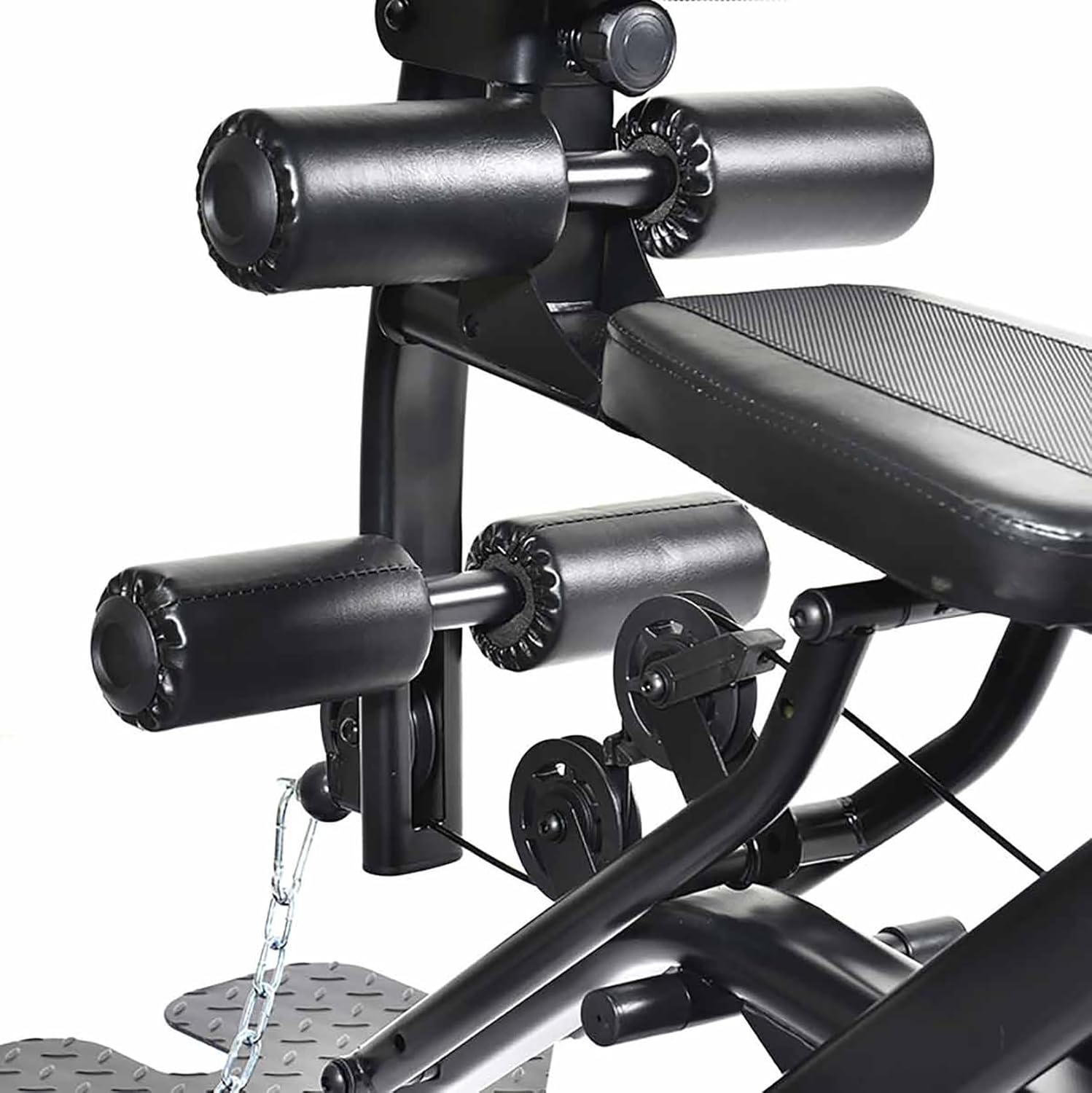 The lower pulley system can take any of the gym attachments, popular exercises are seated rows, bicep curls, side raises, leg curls and plenty more.