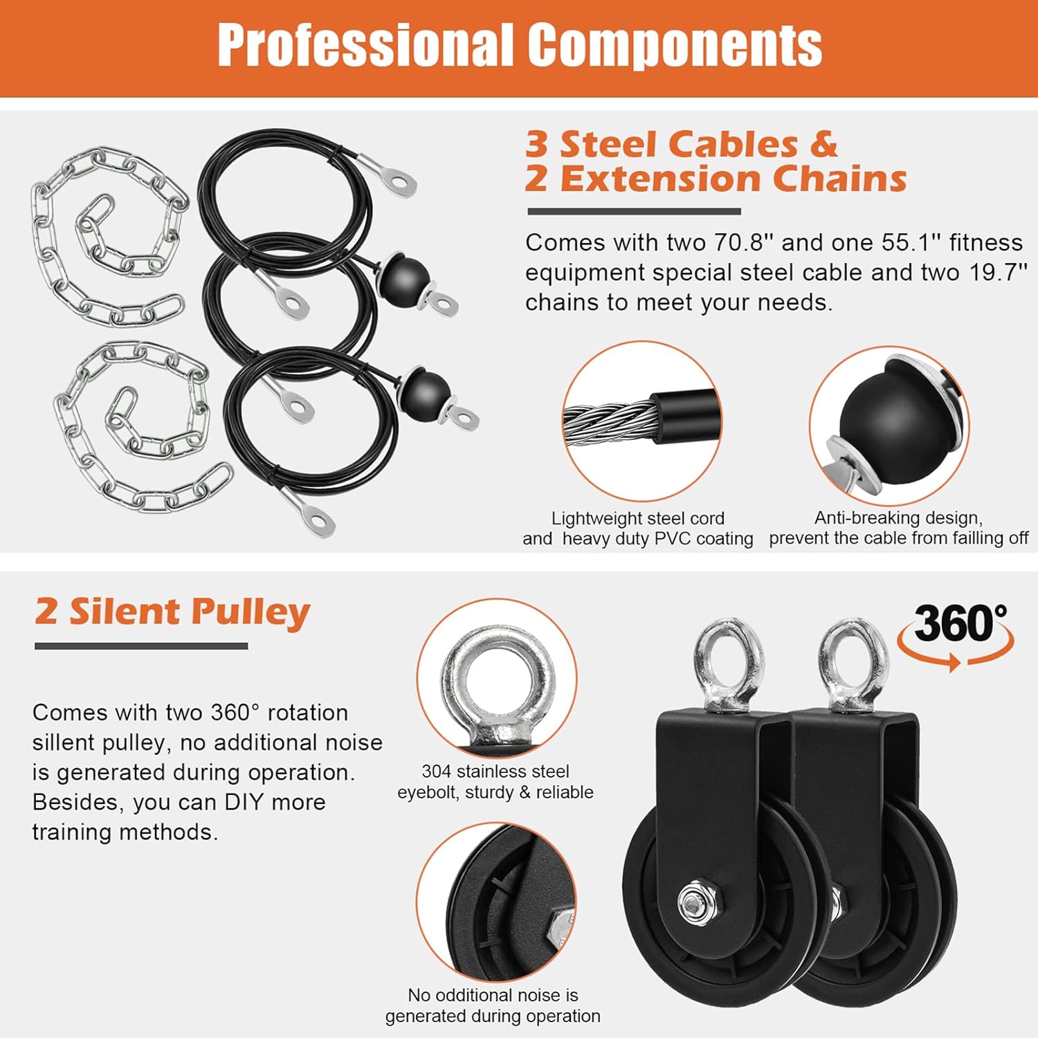SERTT Weight Pulley System Gym, Pulley Pro Home Cable Pulley System gym for Lat Pull Down, Biceps Curl, Triceps, Shoulders, Back, Forearm Workout, DIY Weight Cable Pulley Attachments for Gym Equipment