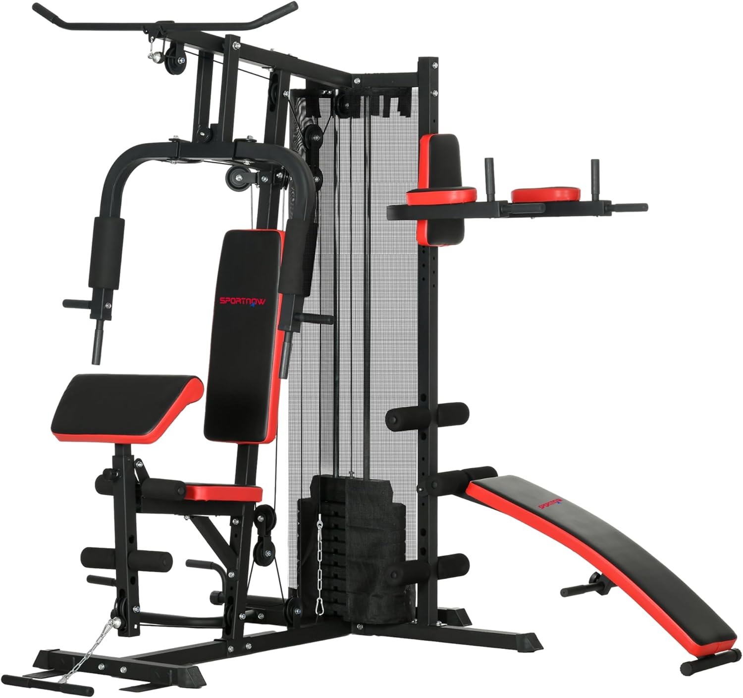 SPORTNOW Multi Gym Workout Station with 65kg Weight Stack, Sit Up Bench, Push Up Stand, Dip Station, Adjustable, Full Body Strength Training for Home Gym