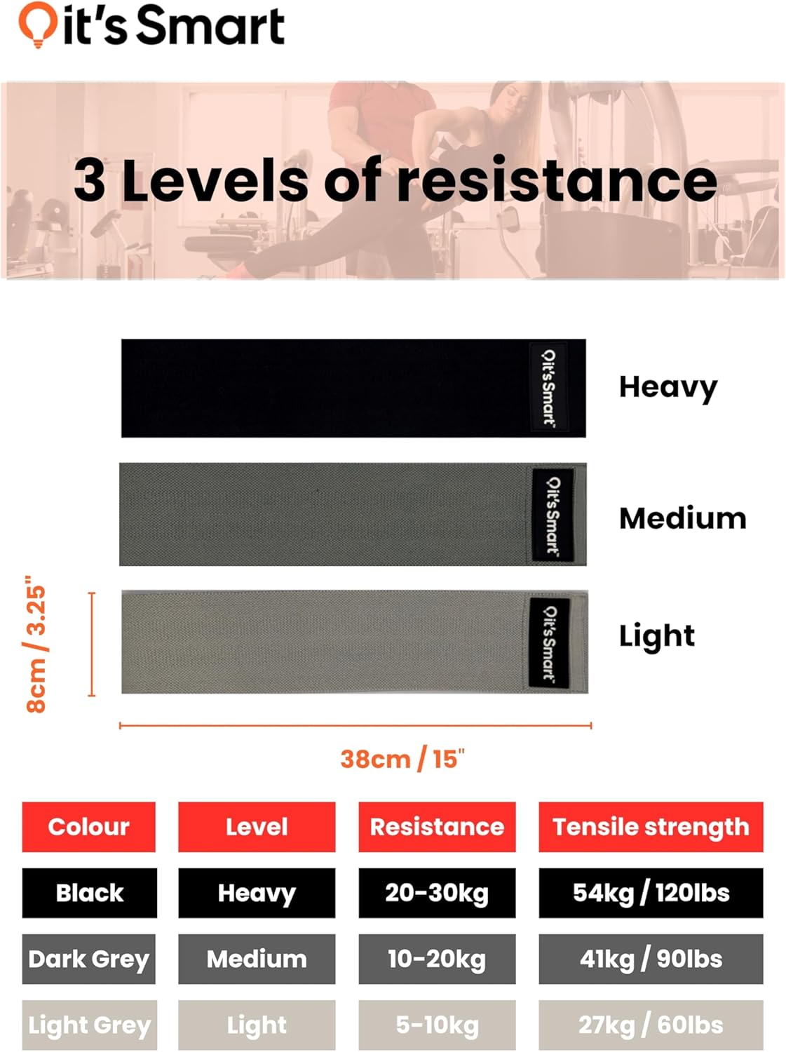 Quality and durability – Designed in the UK. it’s Smart resistance bands are non-slip. With a mix of high quality cotton polyester stretch fabric and a strong natural latex for elasticity and flexibility, these bands are a completely different, premium level of quality to the cheaper latex or rubber bands.
