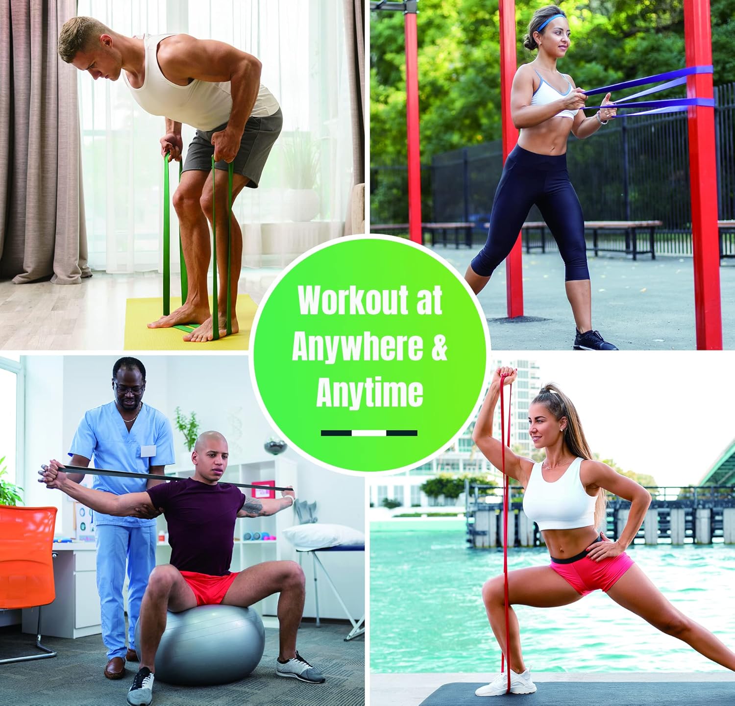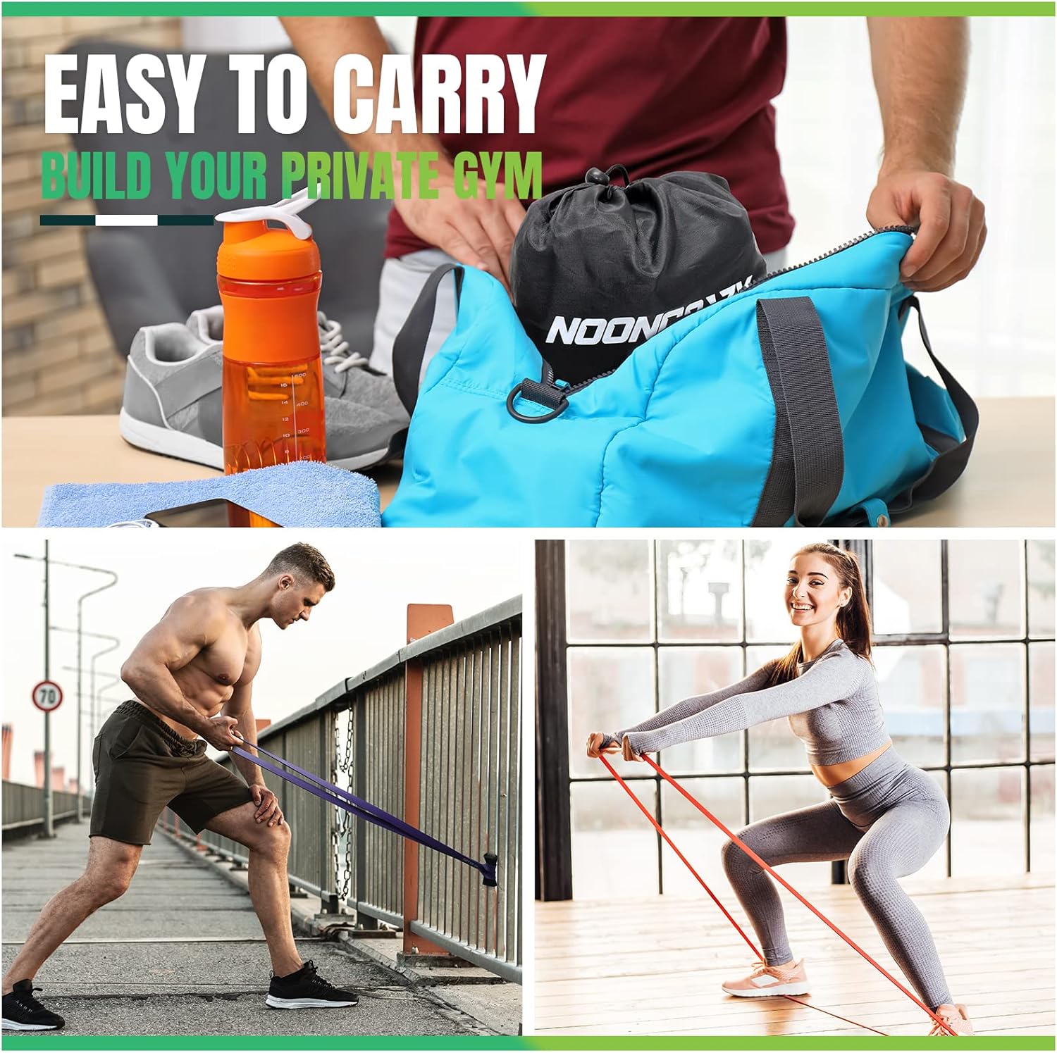 Your Mobile Gym – You can simply put the workout bands in the carrying bag, so you can work out anytime, anywhere. These fitness bands not only serve as the ideal fitness equipment for at home, they are also very suitable for gyms, hotels, etc. Simply combine them with pull-up bars, exercise machines or any other fixed stable object to quickly transform your environment into the most effective gym!