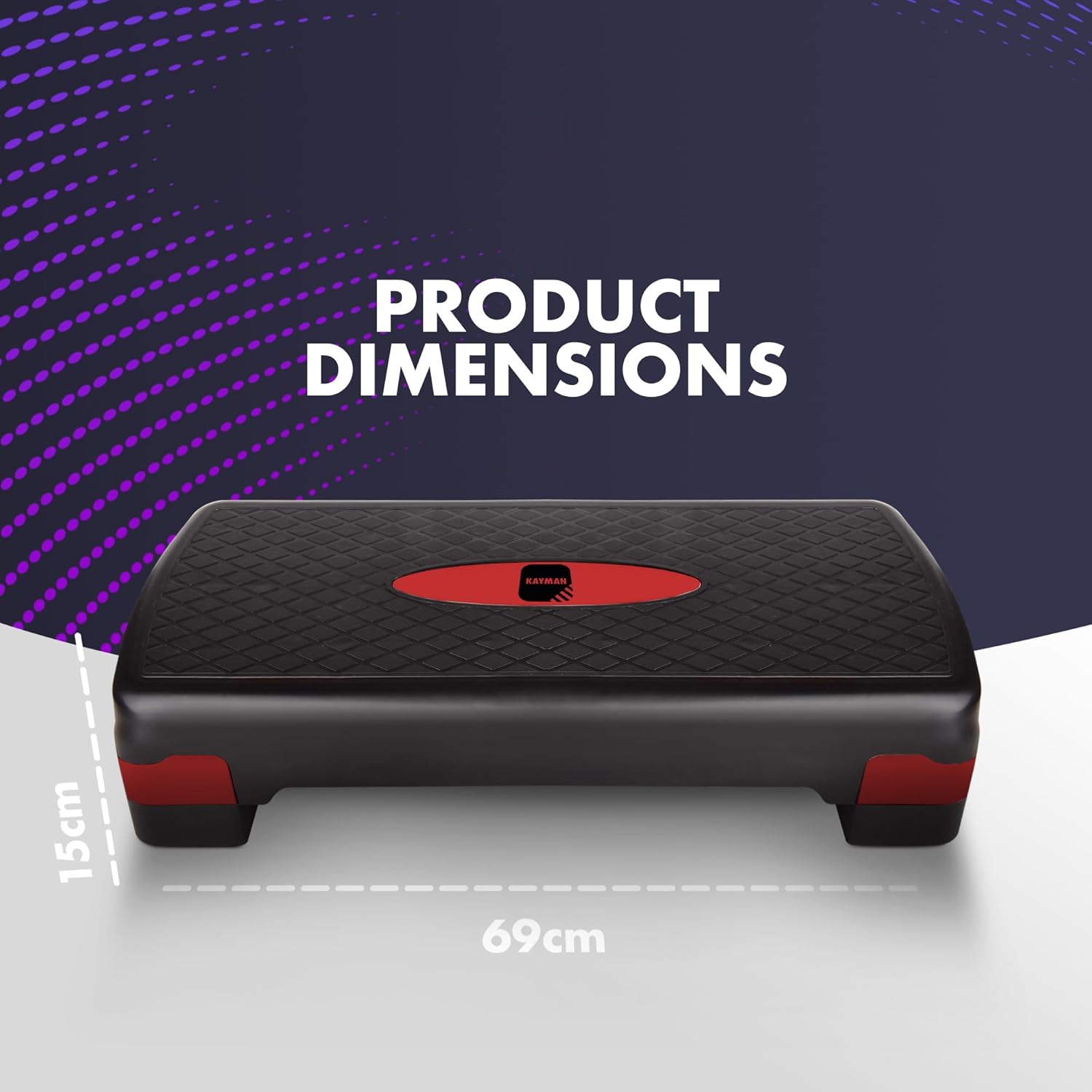KAYMAN Exercise Steps – Fitness Stepper for Home & Gym, Suited for Aerobics, Cardio, Weights, Yoga, DVD Workout – Adjustable Multi Step Level Heights – Perfect Equipment Accessory Set