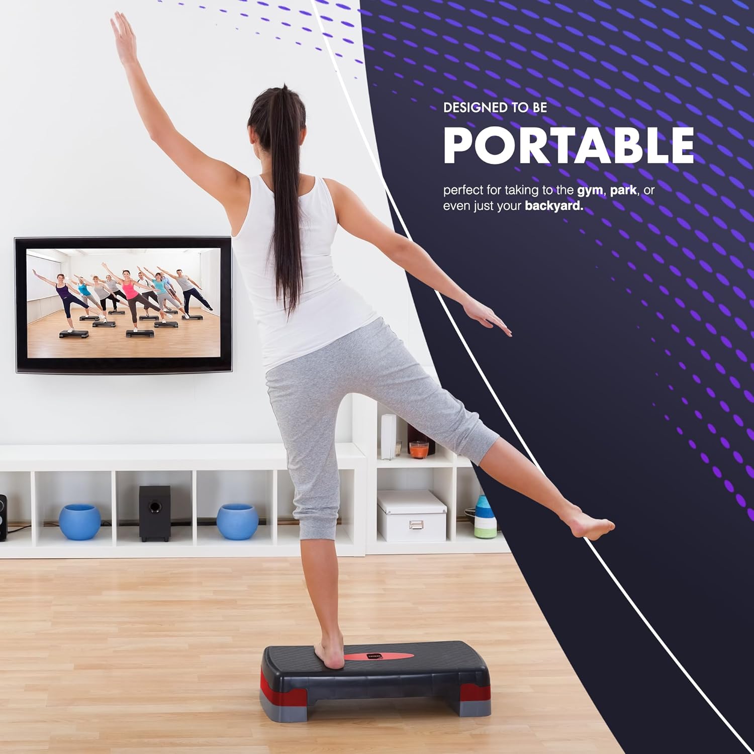 PORTABLE: Stay active and fit on the go with our compact and portable Fitness Stepper! These lightweight steppers are perfect for taking to the gym, park, or even just your backyard. And with their slim shape and strong material, they’re easy to store anywhere in your home. Don’t let your busy schedule or lack of access to a gym hold you back from reaching your fitness goals – take our portable Fitness Steps with you wherever you go.