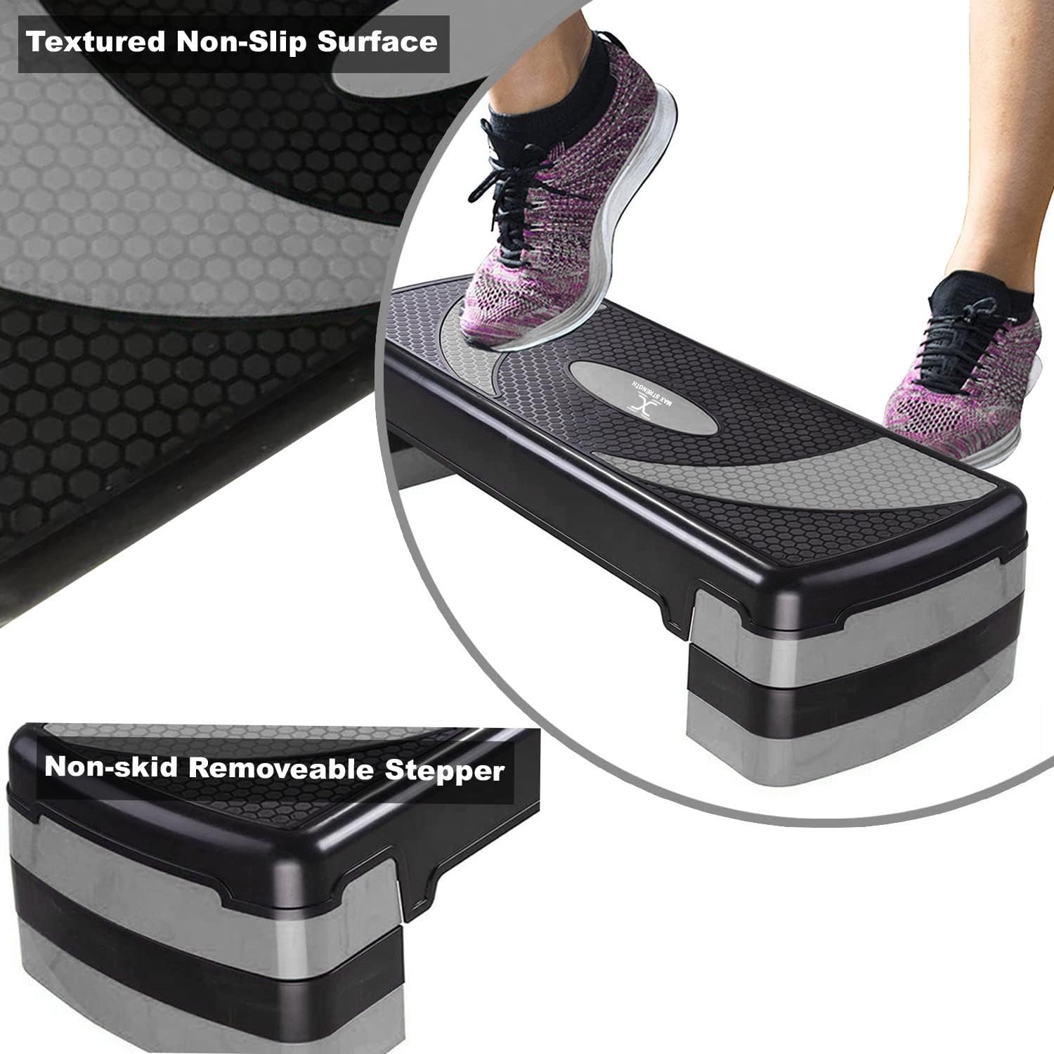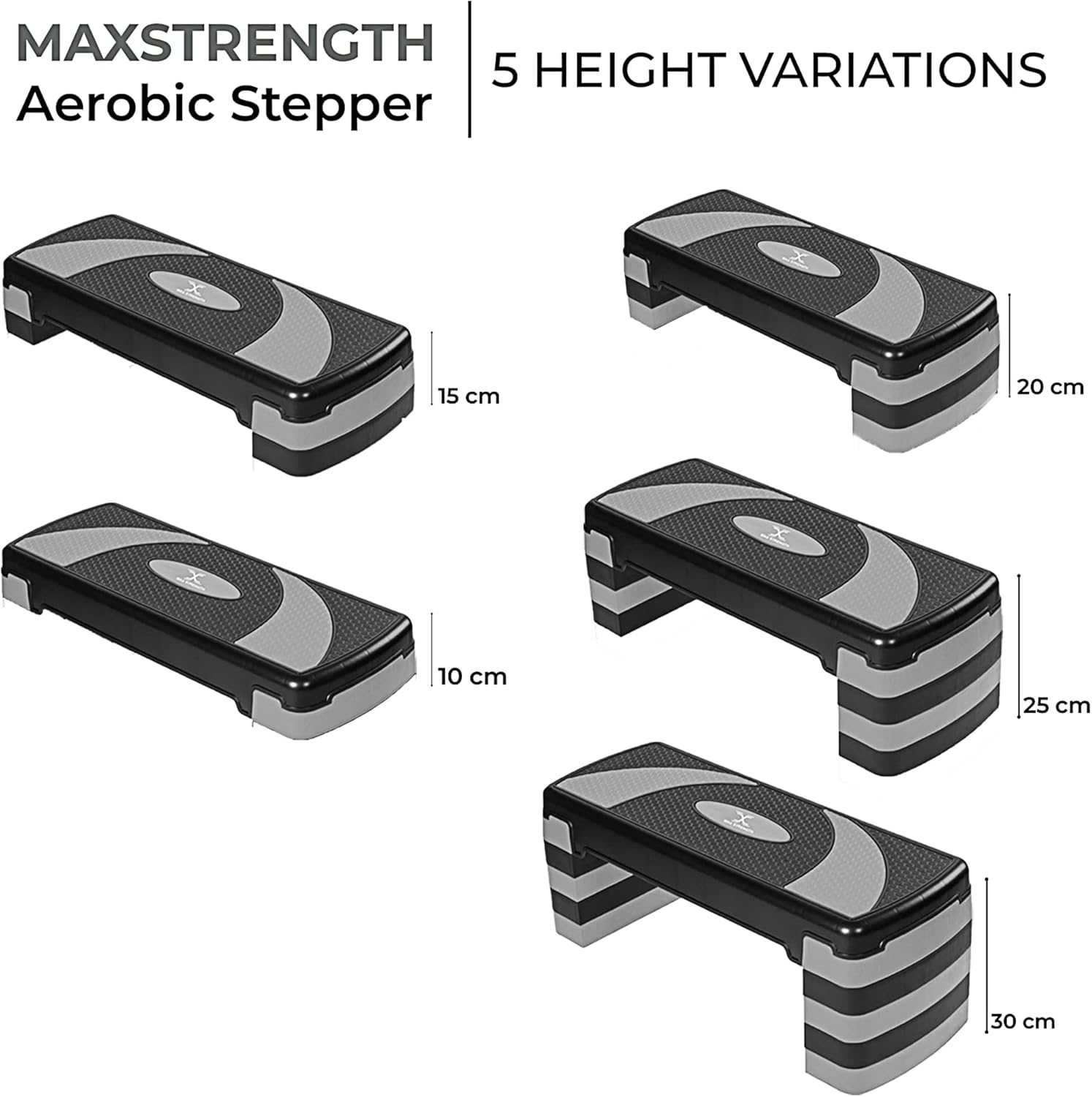 MAXSTRENGTH Fitness Stepper for Exercise Workout 5 Height Level Adjustable 10cm 15cm 20cm 25cm 30cm Non-Slip Step Platform for Aerobic Exercise Aerobic Stepper Yoga Routines Training