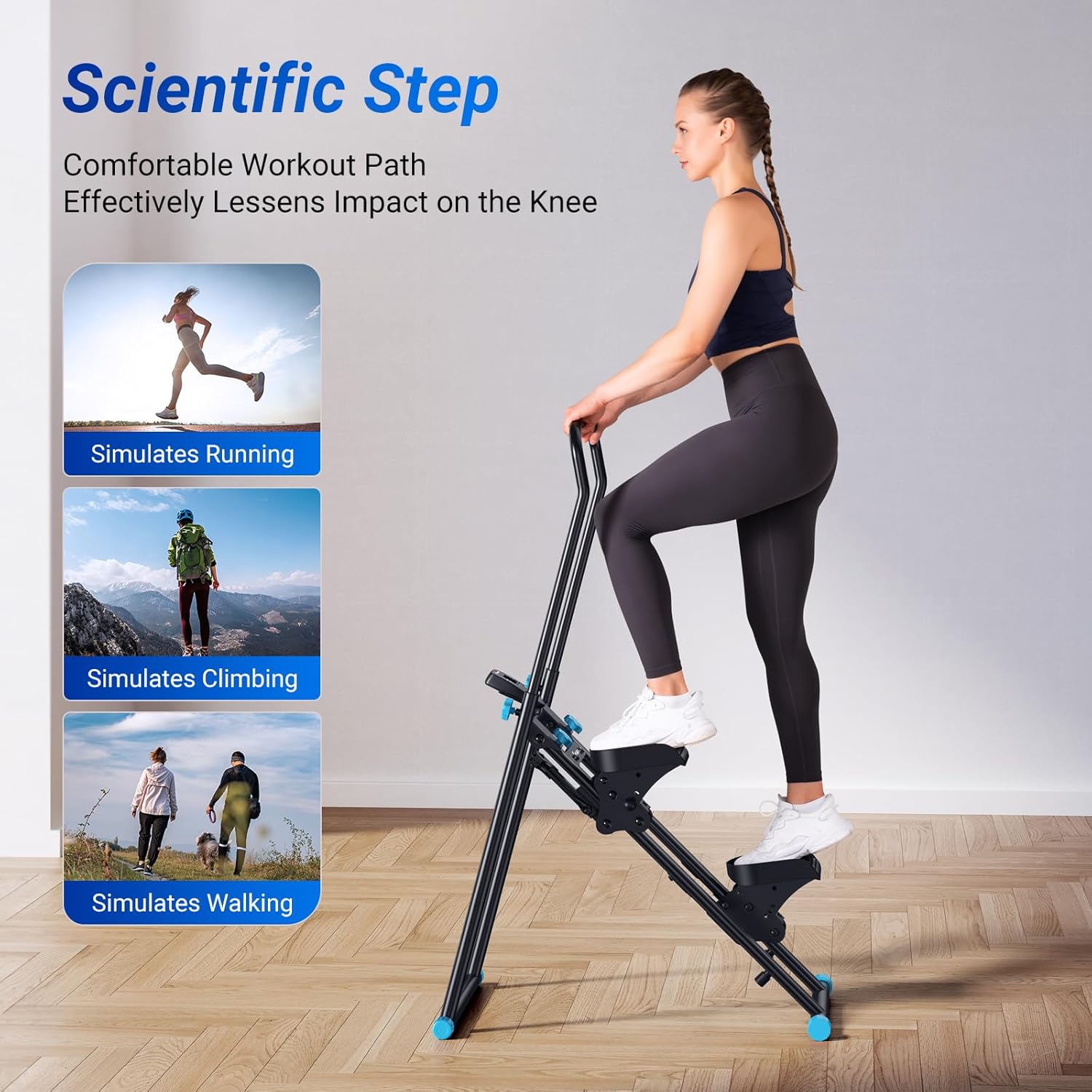 【 Scientifically Optimized Stride 】 Our stair master features an innovative design with a scientifically engineered stride length and range of motion. This ensures a comprehensive workout that protects your knees from strain while maximizing muscle engagement.