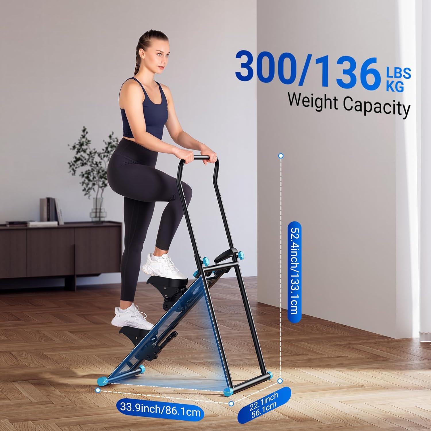 【 Built for Safety & Durability 】 With a robust frame that supports up to 300 lbs, this stair climber machine built to last. Non-slip pedals and secure handlebars ensure a safe and stable workout, even during intense sessions.
