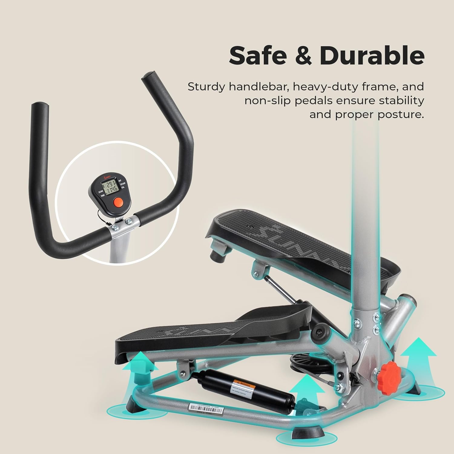 【STURDY HANDLEBAR SUPPORT】The sturdy handlebar provides essential support and balance, allowing users to maintain proper posture and stability during their workouts, ensuring a safe and effective exercise experience.