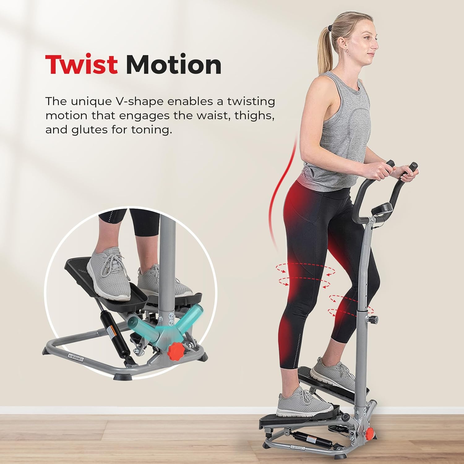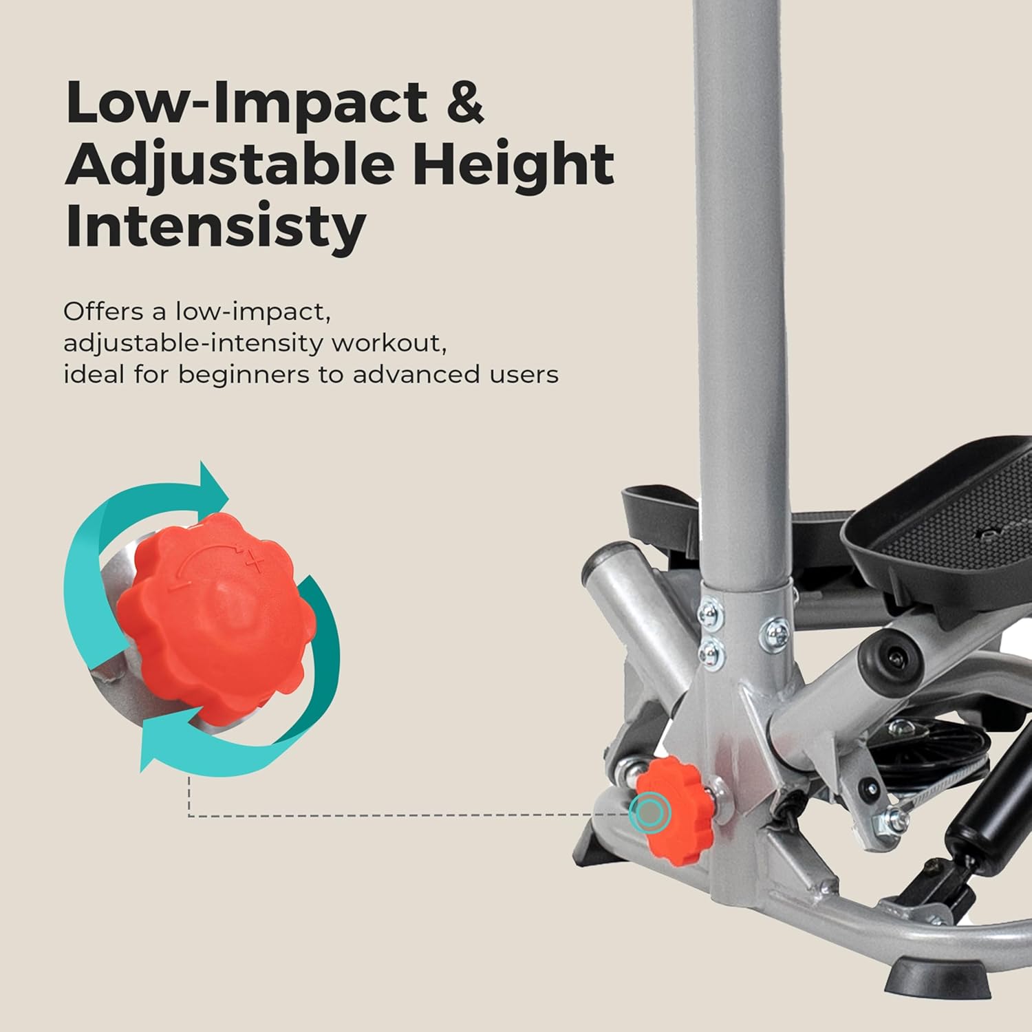 【LOW-IMPACT】The Twist Stair Stepper low-impact workout experience, allowing users to tailor intensity levels, engage in effective cardio, target leg muscles, incorporate interval training.