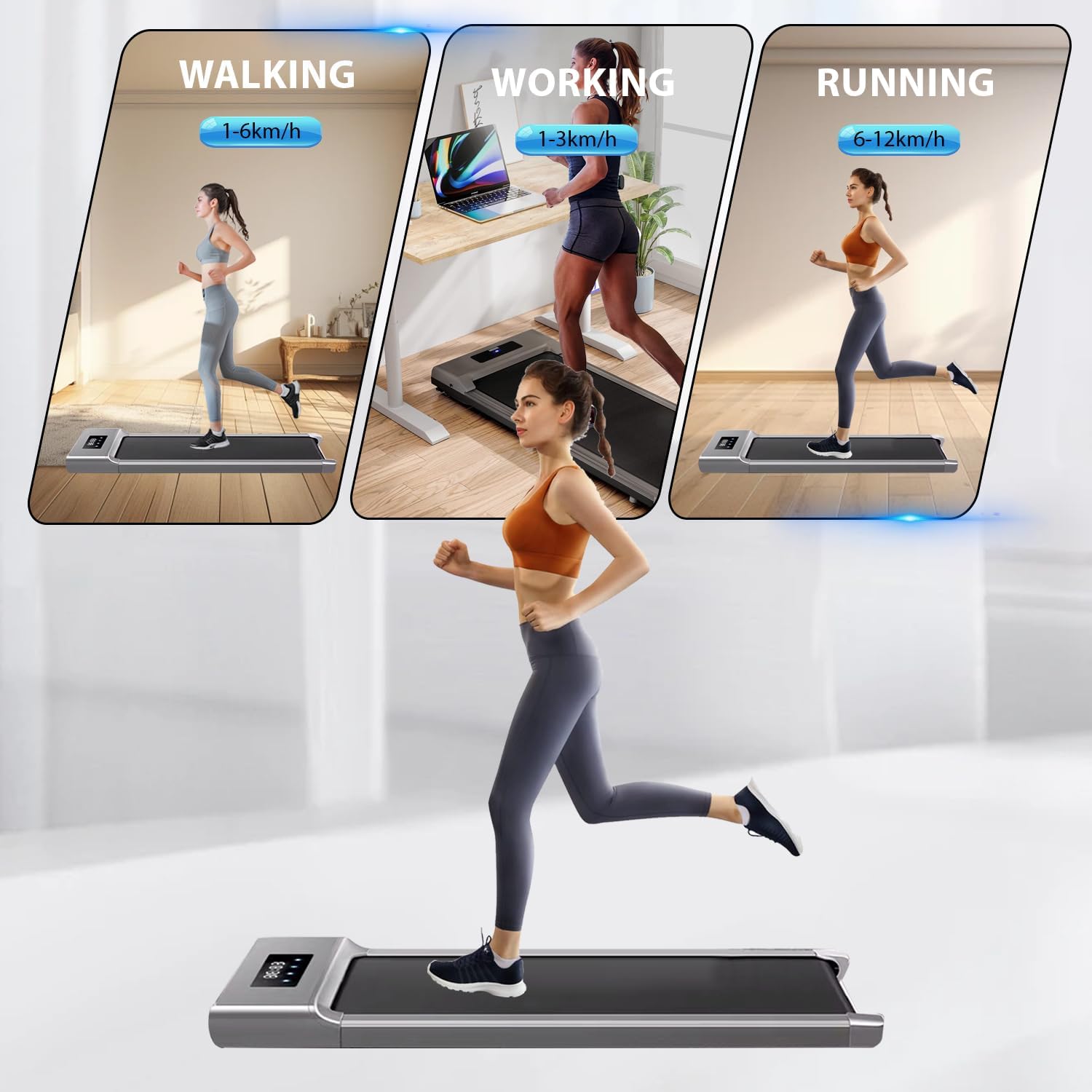 NON-ASSEMBLY DESIGN – Plug in and use our treadmills to exercise right away! Compared to traditional treadmills, our under desk treadmills eliminate the tedious assembly process and potentially high assembly costs. Under desk treadmill offers you the easiest exercise pleasure!
