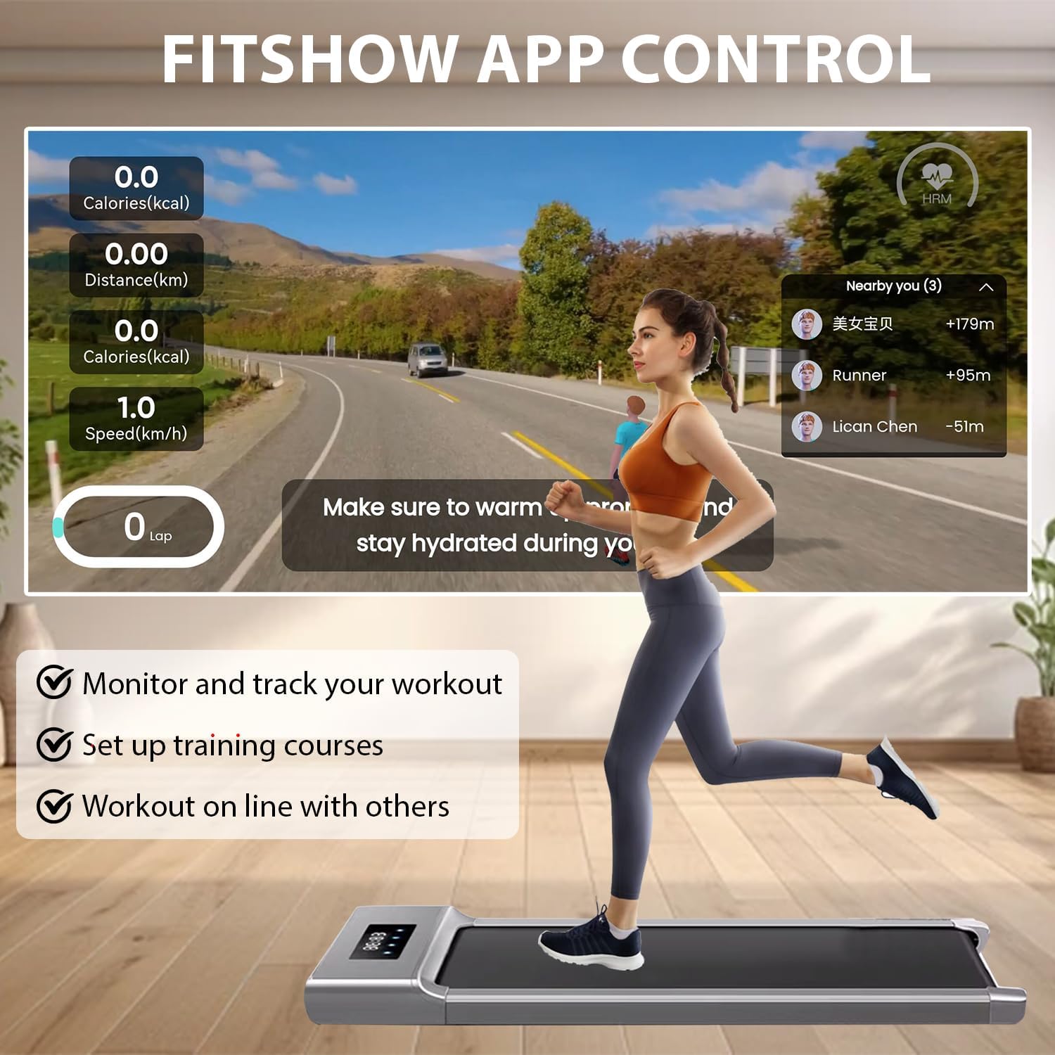 APP CONTROL FOR YOUR SOCIAL WORKOUT – The smart Fitshow workout APP can monitor and track your workout on your phone, or set up the training program at the same time. Moreover, you can workout on line with others anytime in diverse competitions on the app. Join us to enter a new world of social workout!