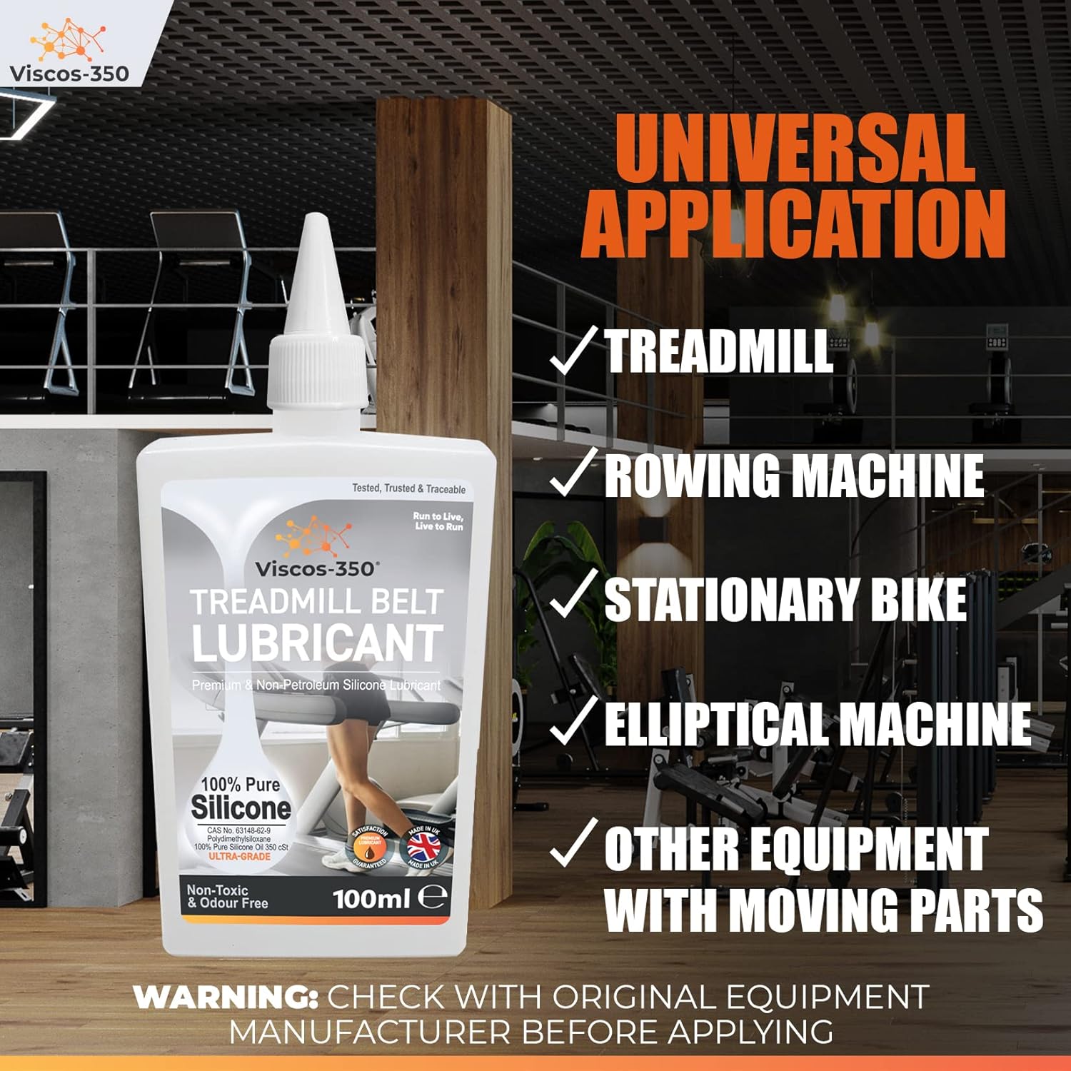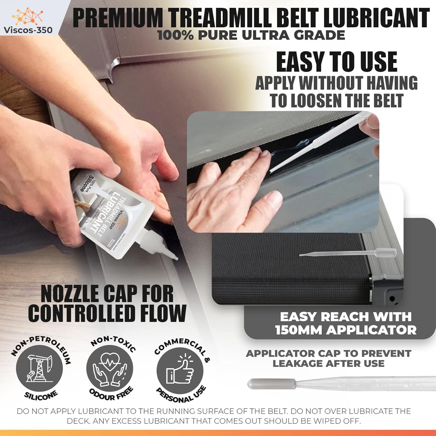 Viscos-350 Premium Treadmill Lubricant Pure Silicone Oil 15cm Long Applicator Inc – Made in UK – 100ml