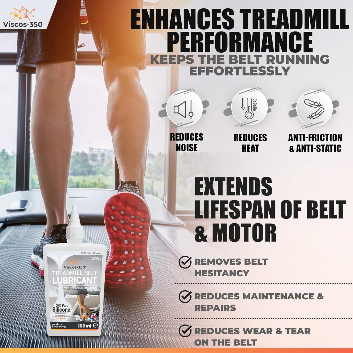 100% PURE ULTRA GRADE: What leads to the success of your premium silicone oil is our unique process that primes to a 100% pure ultra-grade silicone lubricant to 350 cSt Viscosity as specified by treadmill manufactures. Made in UK, your treadmill oil lasts much longer while being anti-friction and anti-static.