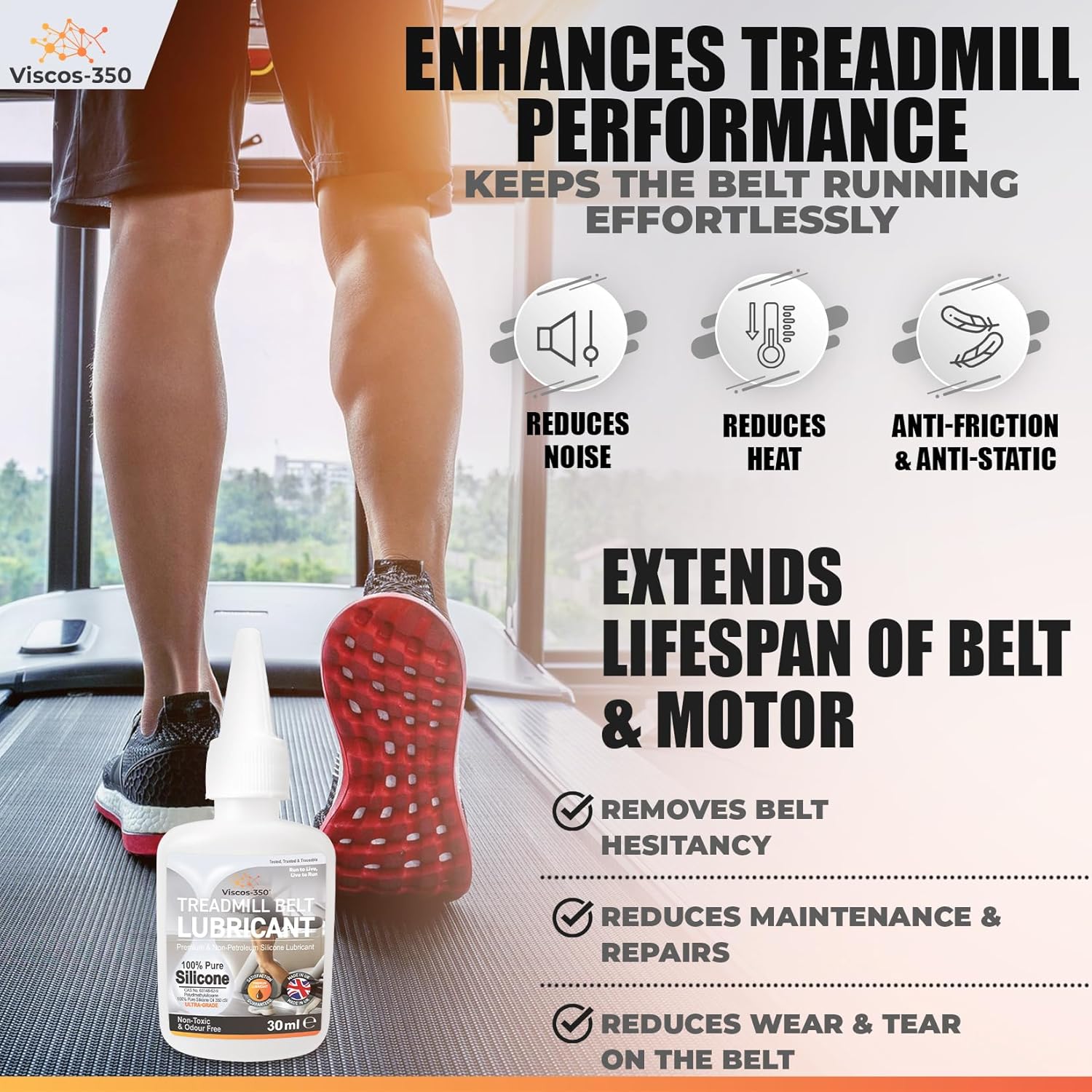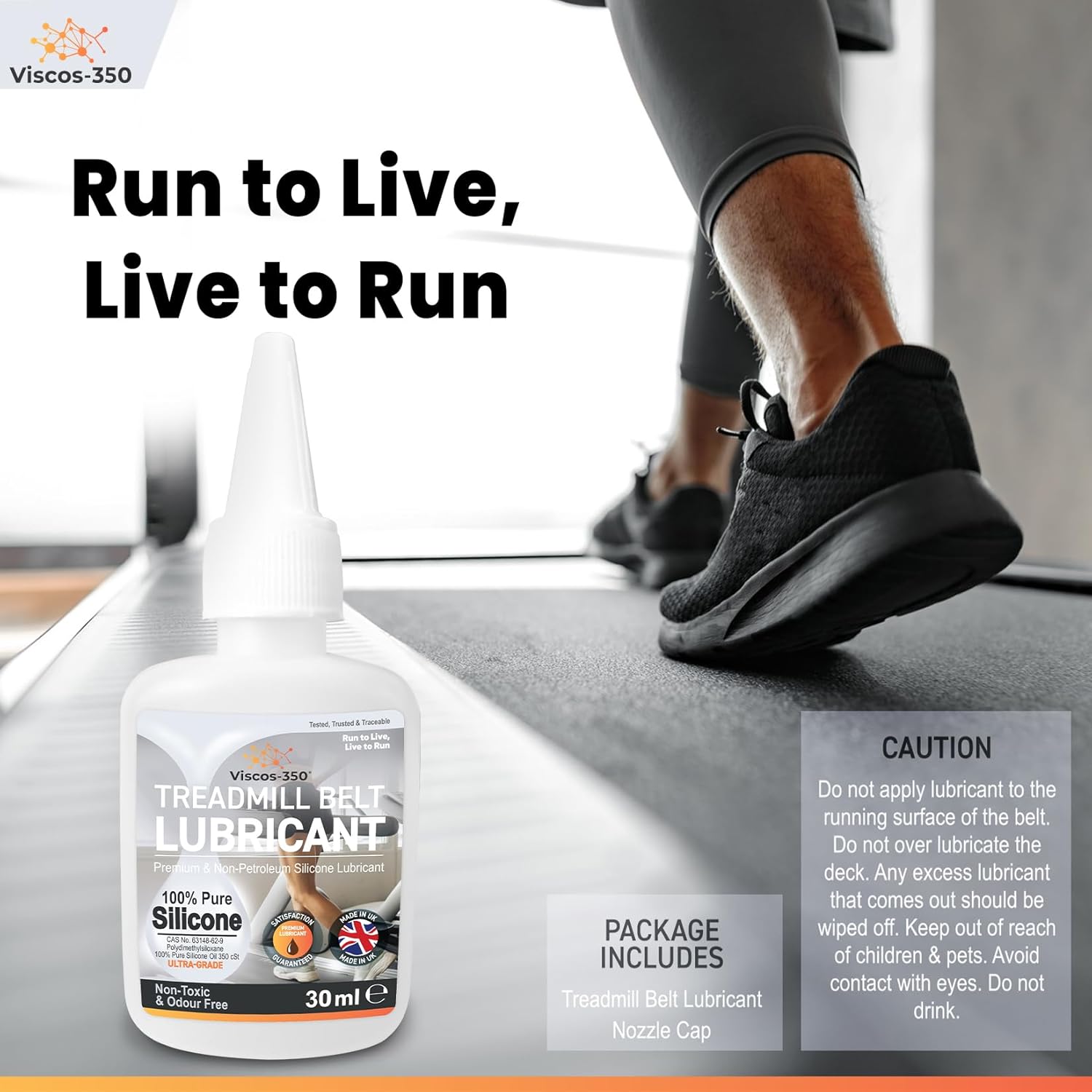 Viscos-350 Premium Treadmill Lubricant Pure Silicone Oil – Made in UK – 30ml