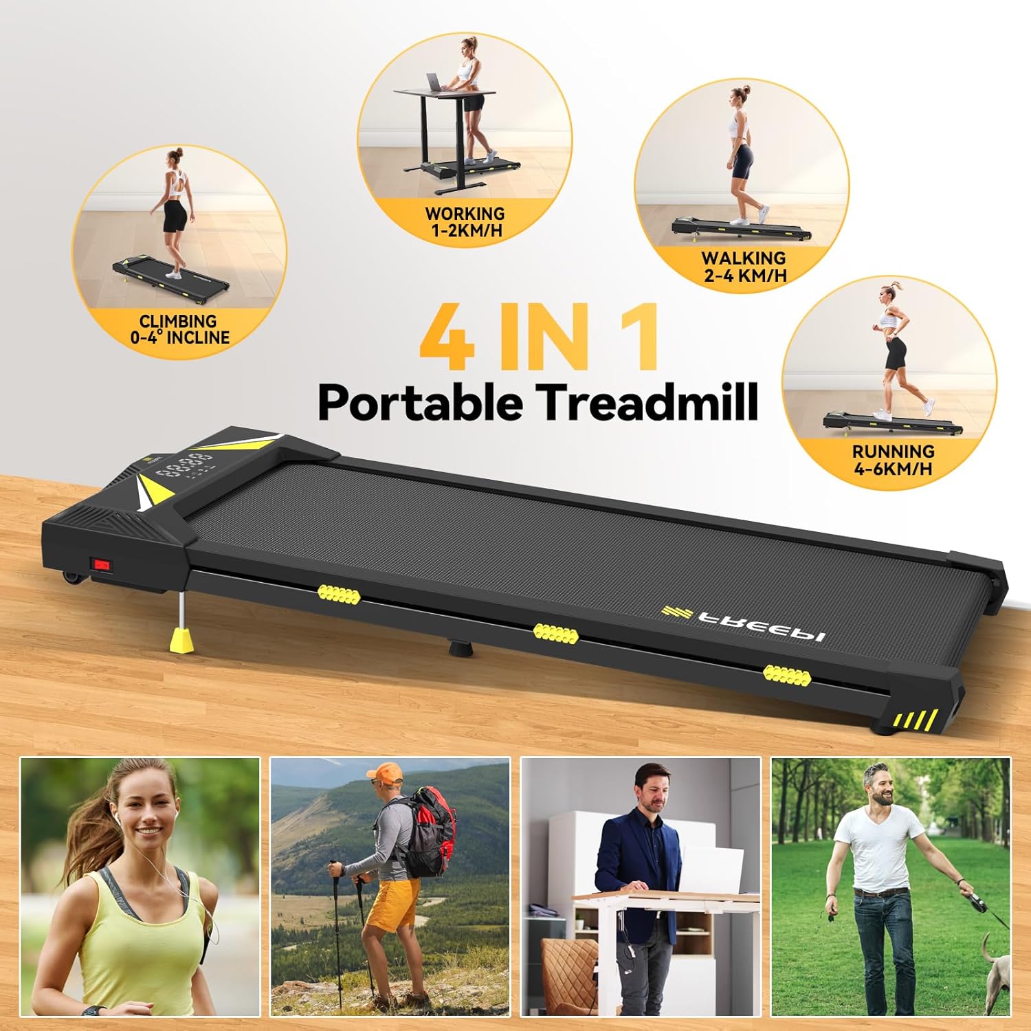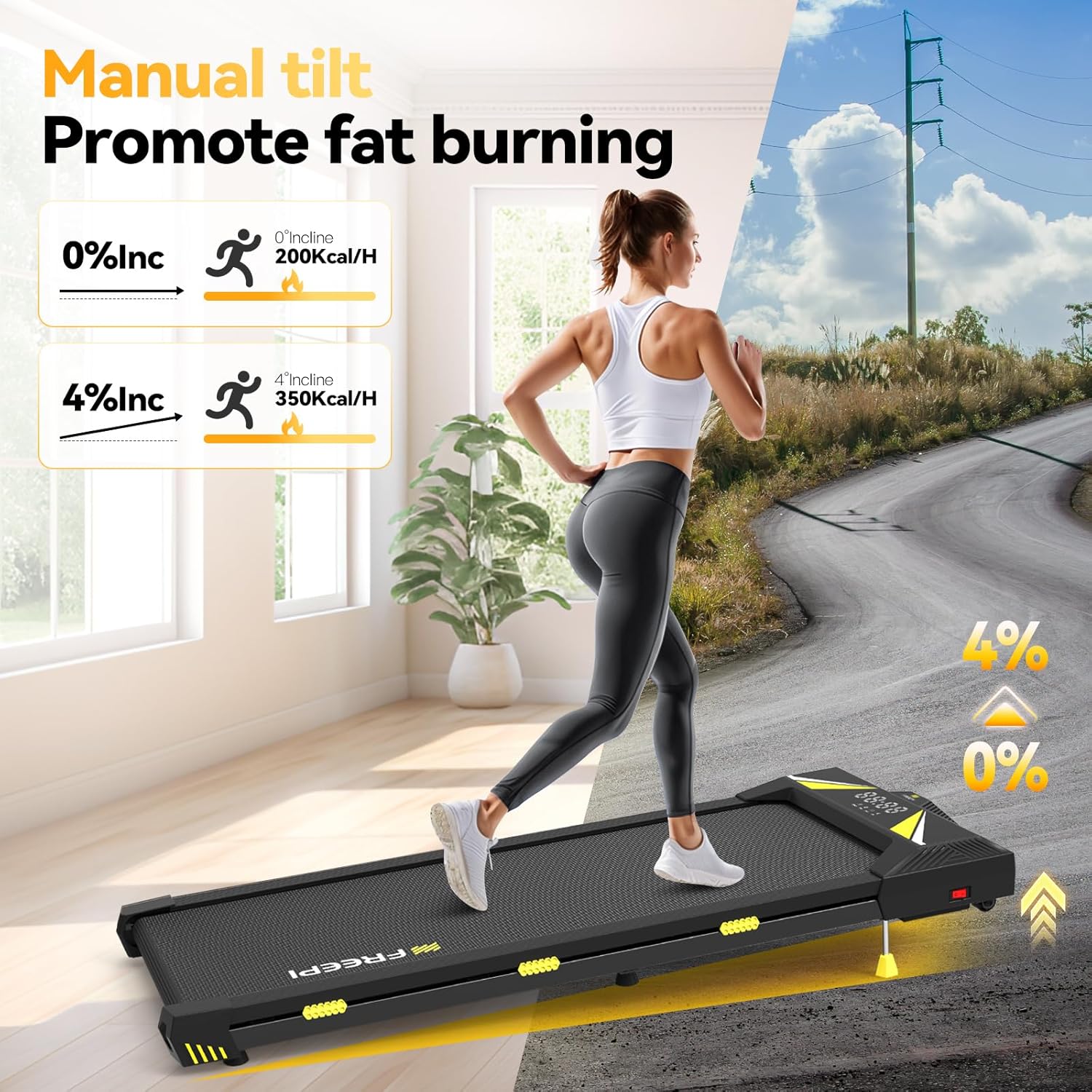 [0-4% Incline Adjustment & Improve Exercise Effect] : Our walking pad support 0-4% incline adjustment compared to regular walking pad, helping to increase fat burning and calorie consumption, allowing you to experience the benefits of mountain climbing in the comfort of your own home.