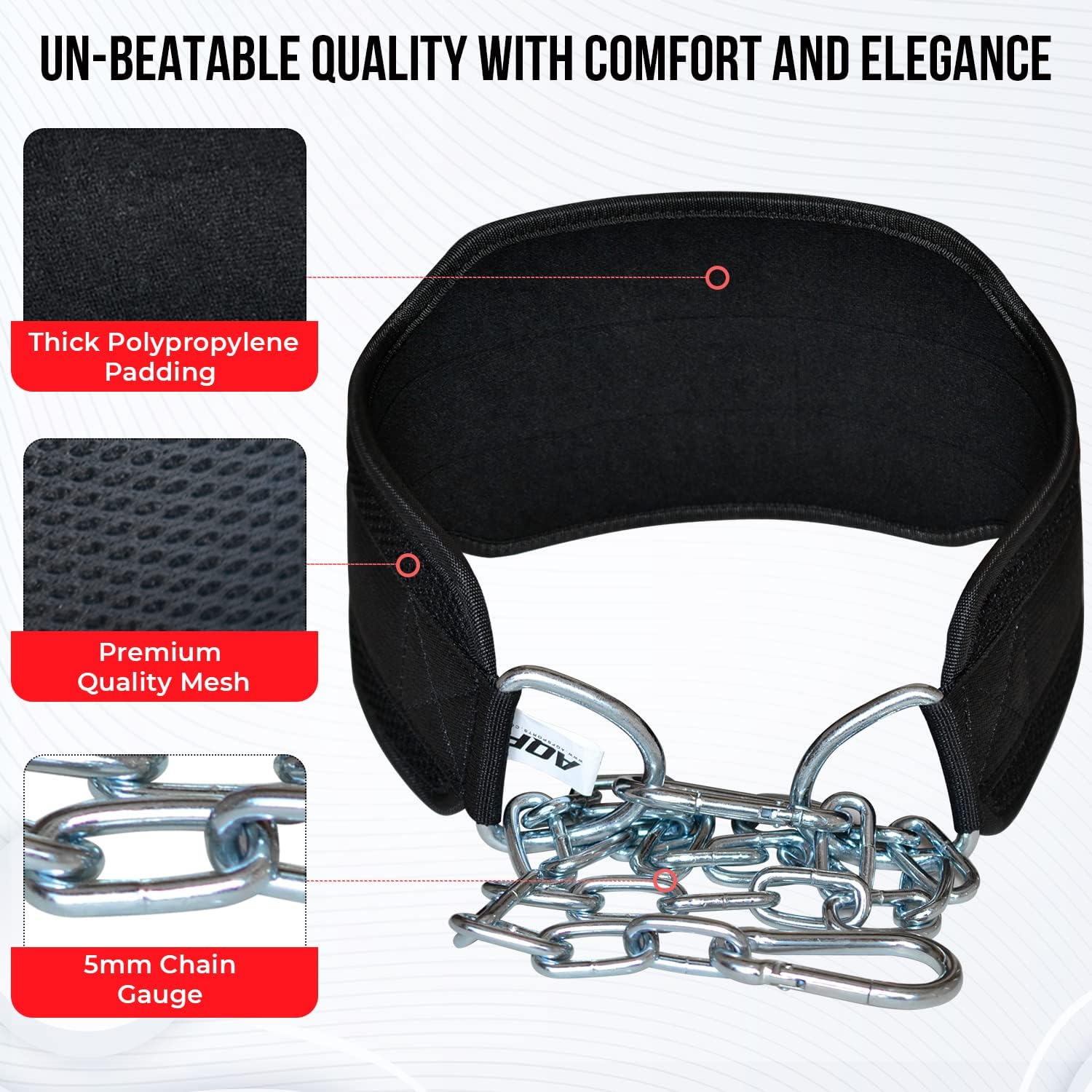 AQF Dip Belt for Weightlifting | Weight Belt with 36″ Heavy Duty Steel Chain | Neoprene Padded Back Support Gym Lifting Belt for Powerlifting, Bodybuilding, Exercise, Fitness & Pull ups Workout