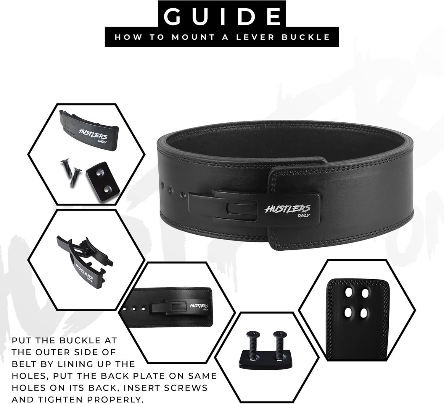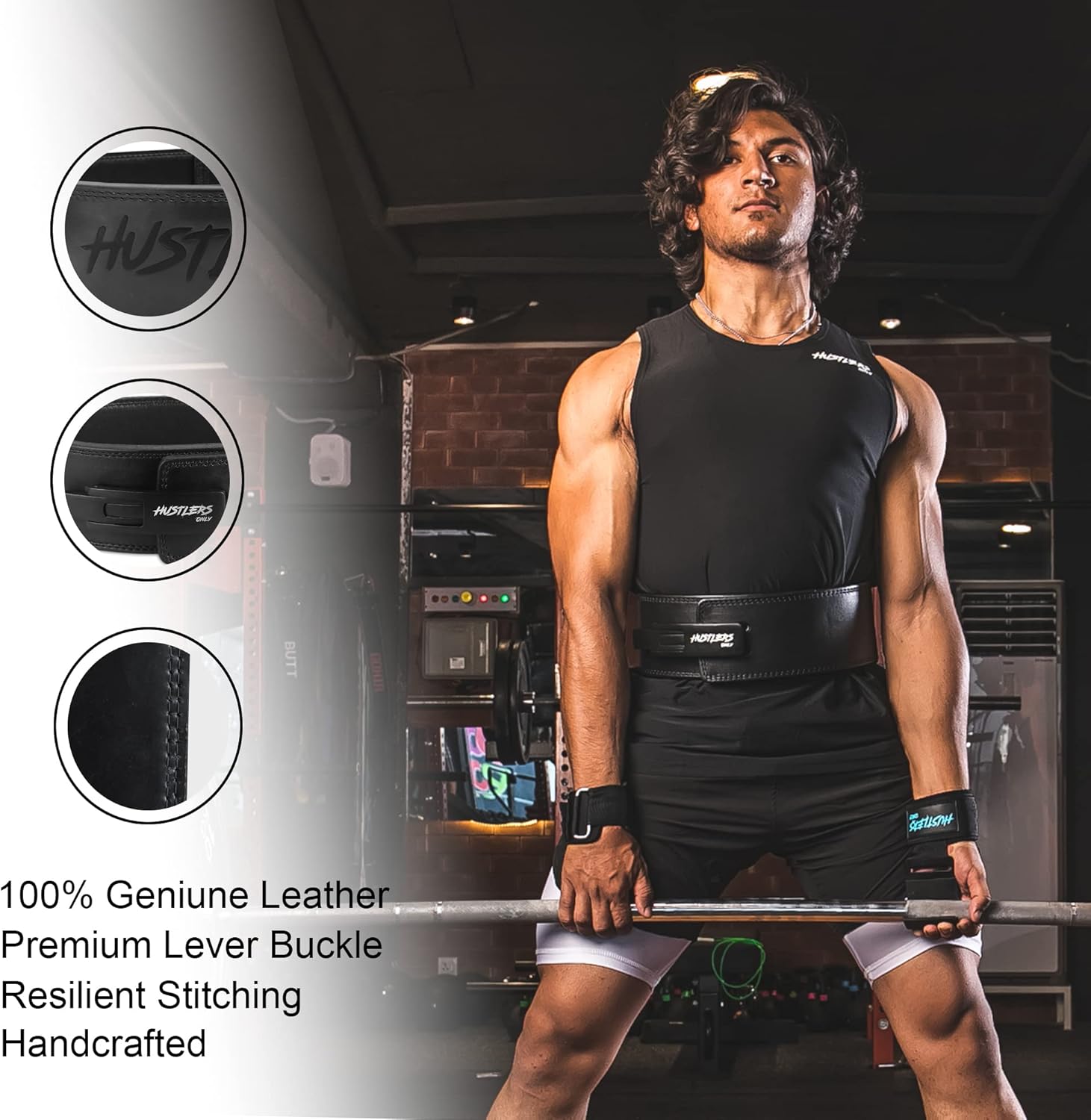 Hustlers Only Weight Lifting Belt with Lever Buckle Genuine Leather Gym Belt for Deadlift, Power Lifting, Bodybuilding, Workout Belt 10mm thickness for Back Support, Lifting Belt for Men and Women