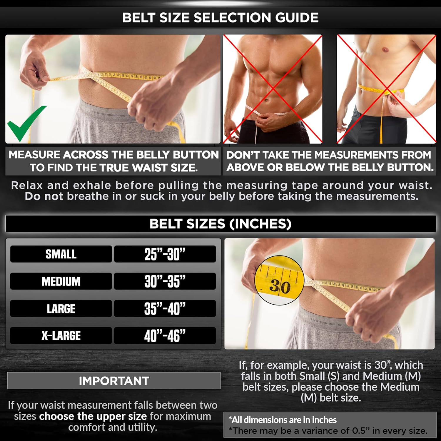 VARIABLE SIZES– Kindly do not choose your exercise belt size as your pant size. Refer to the size chart in the picture to choose the size correctly. If your waist measurement falls between two sizes choose the upper size for maximum utility.