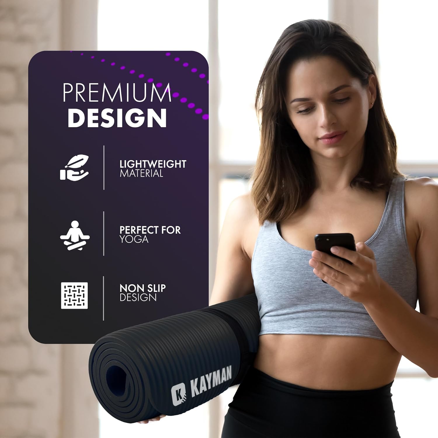 KAYMAN Yoga Mat – Multi-Purpose Extra Thick Foam Exercise Mats – Ideal Floor Mat for Pilates, Stretching, Resistance Workout & Therapy – Home & Gym Equipment Accessory
