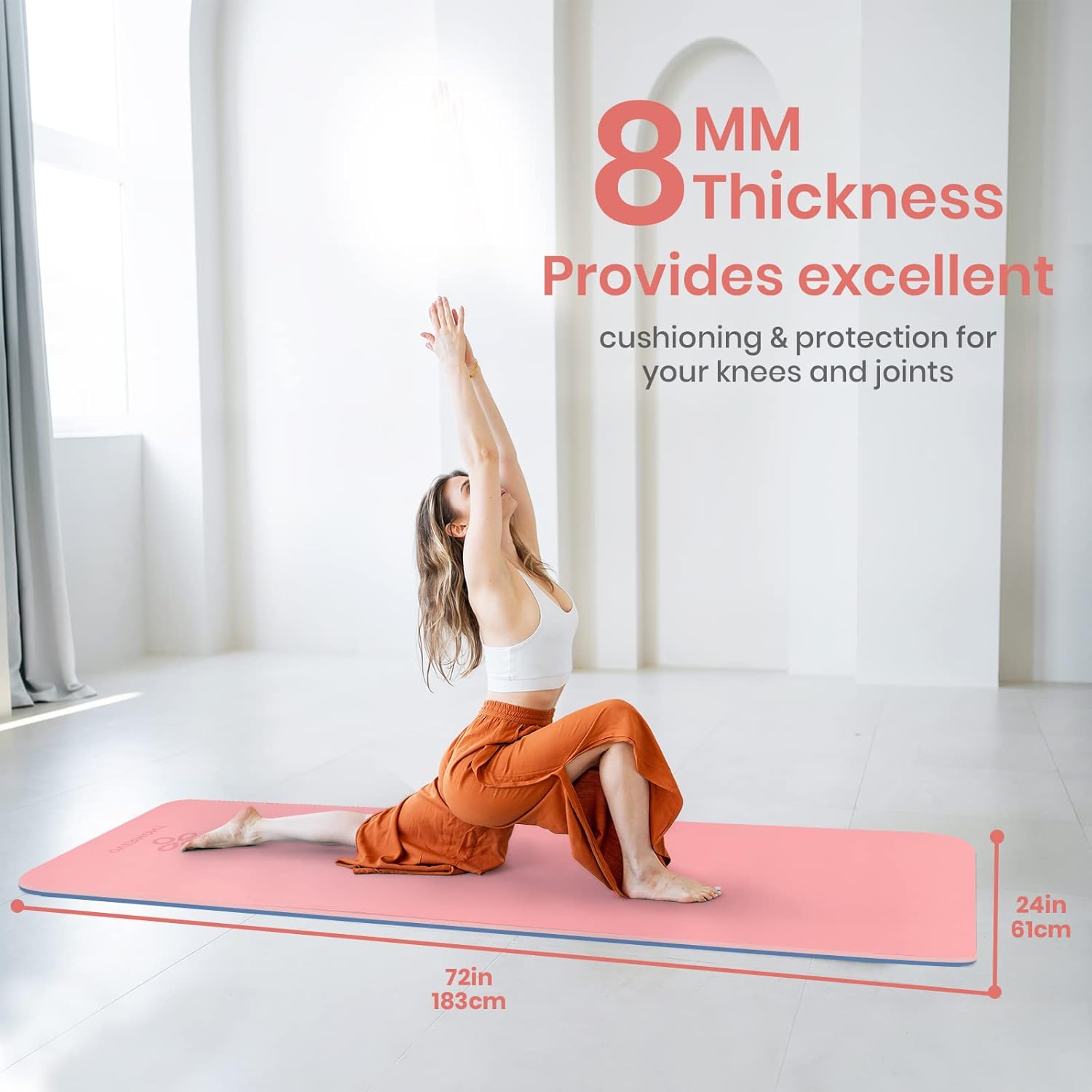 【Optimal Cushioning】: With an 8mm thickness, this workout mat provides optimal cushioning and support for your joints and spine during yoga practice, ensuring a comfortable and pain-free experience.
