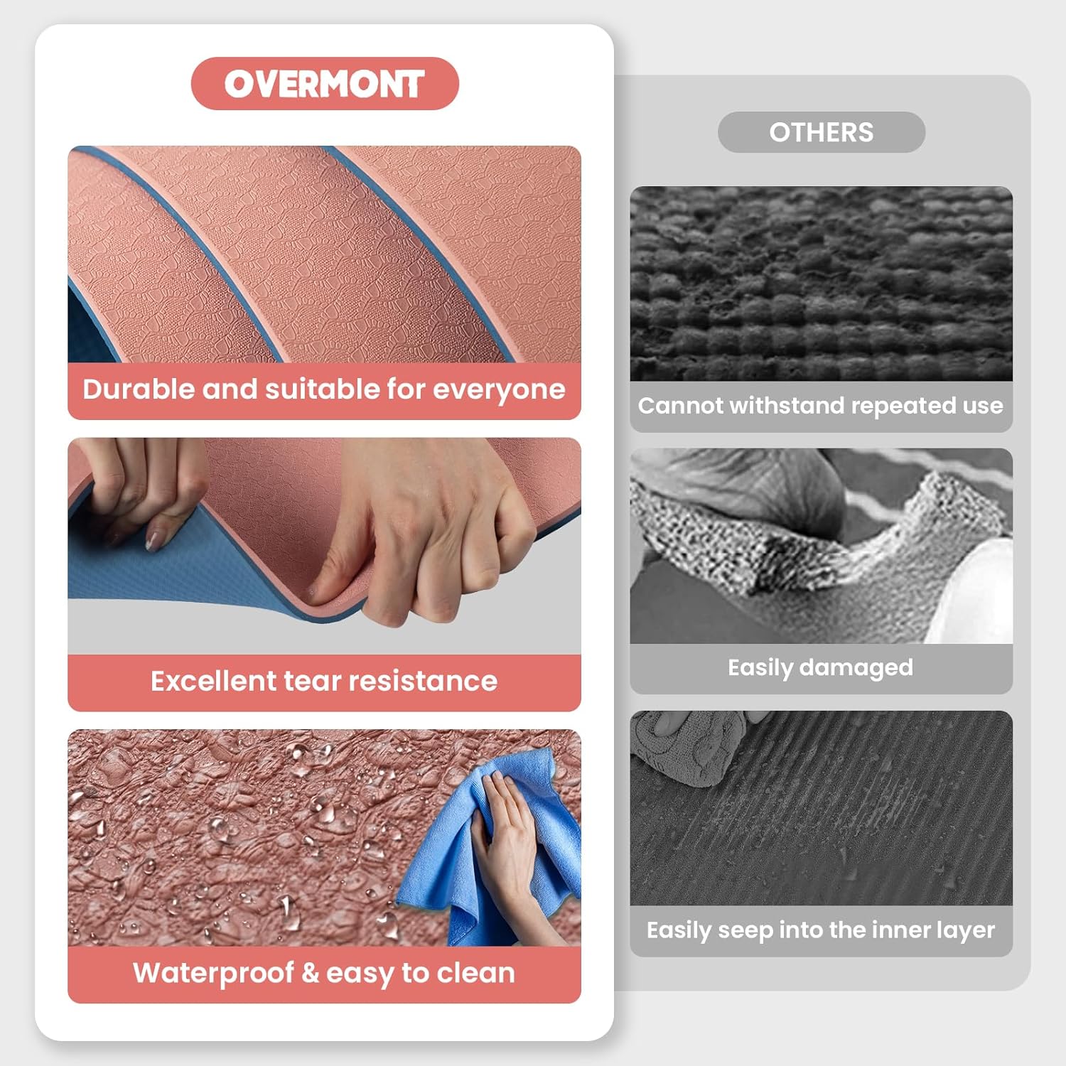 【Spacious and Comfortable】: Measuring 72″x 24″ (183x61mm), the Overmont yoga mat offers ample room for Pilates and stretching, ensuring unrestricted movement and freedom.