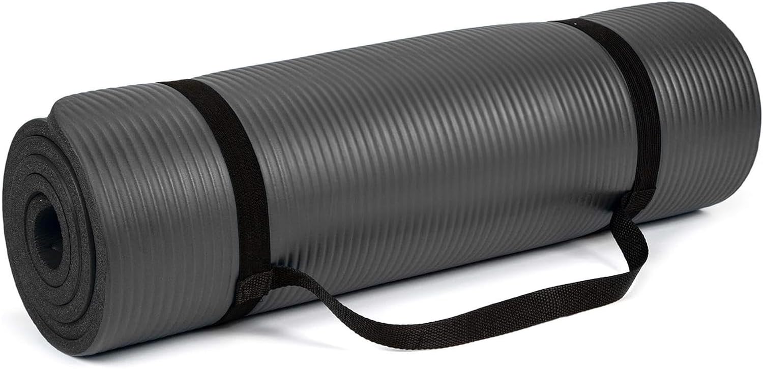simpa Multi-Purpose Exercise & Yoga Mat. Black Extra Thick 12mm NBR Foam Non-Slip Yoga Mat 183cm (L) x 60cm (W) with Carry Strap.
