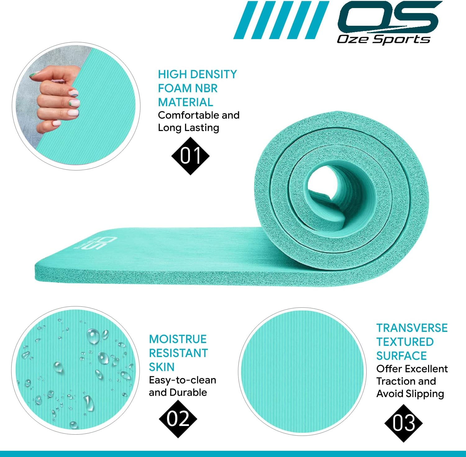 Yoga Mat Exercise NBR Fitness foam mat Extra Thick Non-Slip Large Padded High Density ideal for HiiT Pilates gymnastics mats Fitness & Workout with Free Carry Strap