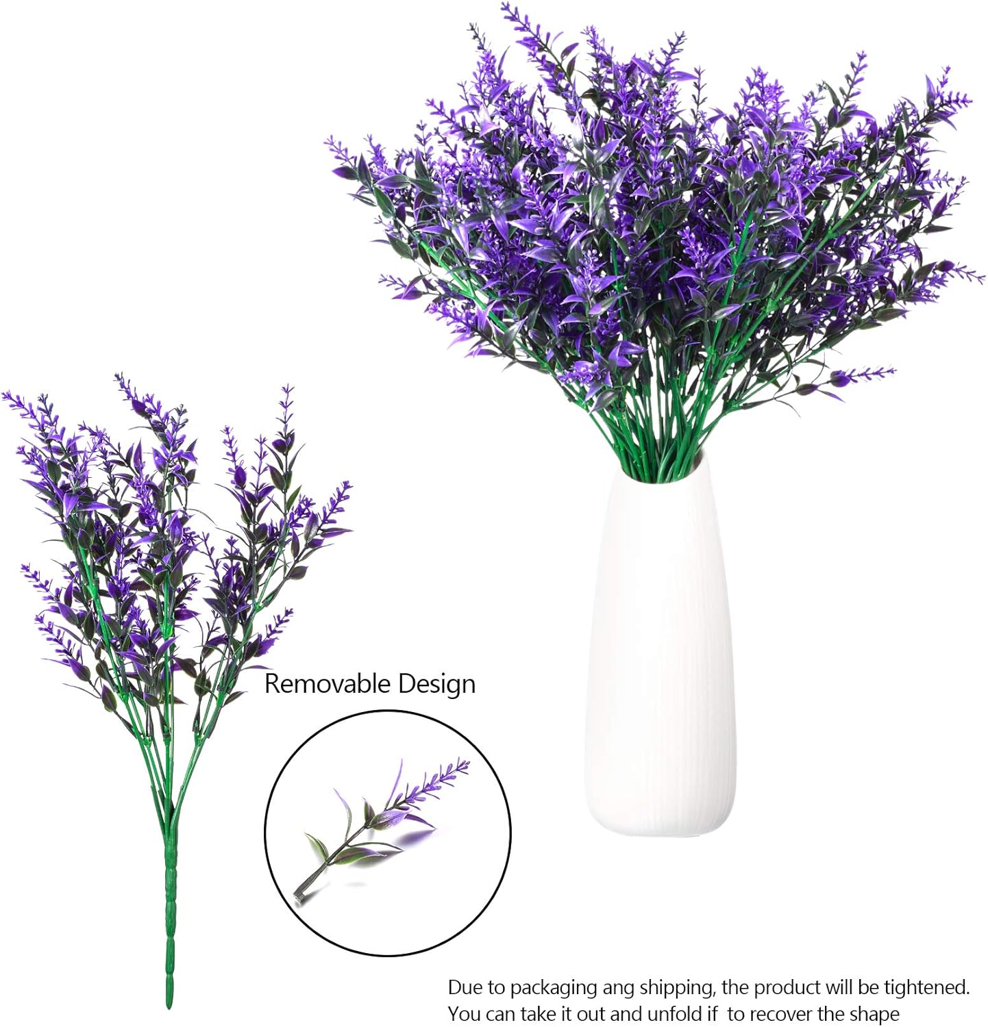 🌺【Everlasting】Artificial fake plants last longer life time, you don’t worry about breaking any leaves or wither. These faux decorative artificial lavender flowers look so vibrant and alive, offer you true-to-life petal and foliage textures, mix it with other fresh flowers and no one will know the difference, flourishing flowers easily light up your mood and brighten up your day, adding your home more romantic and artistic atmosphere.