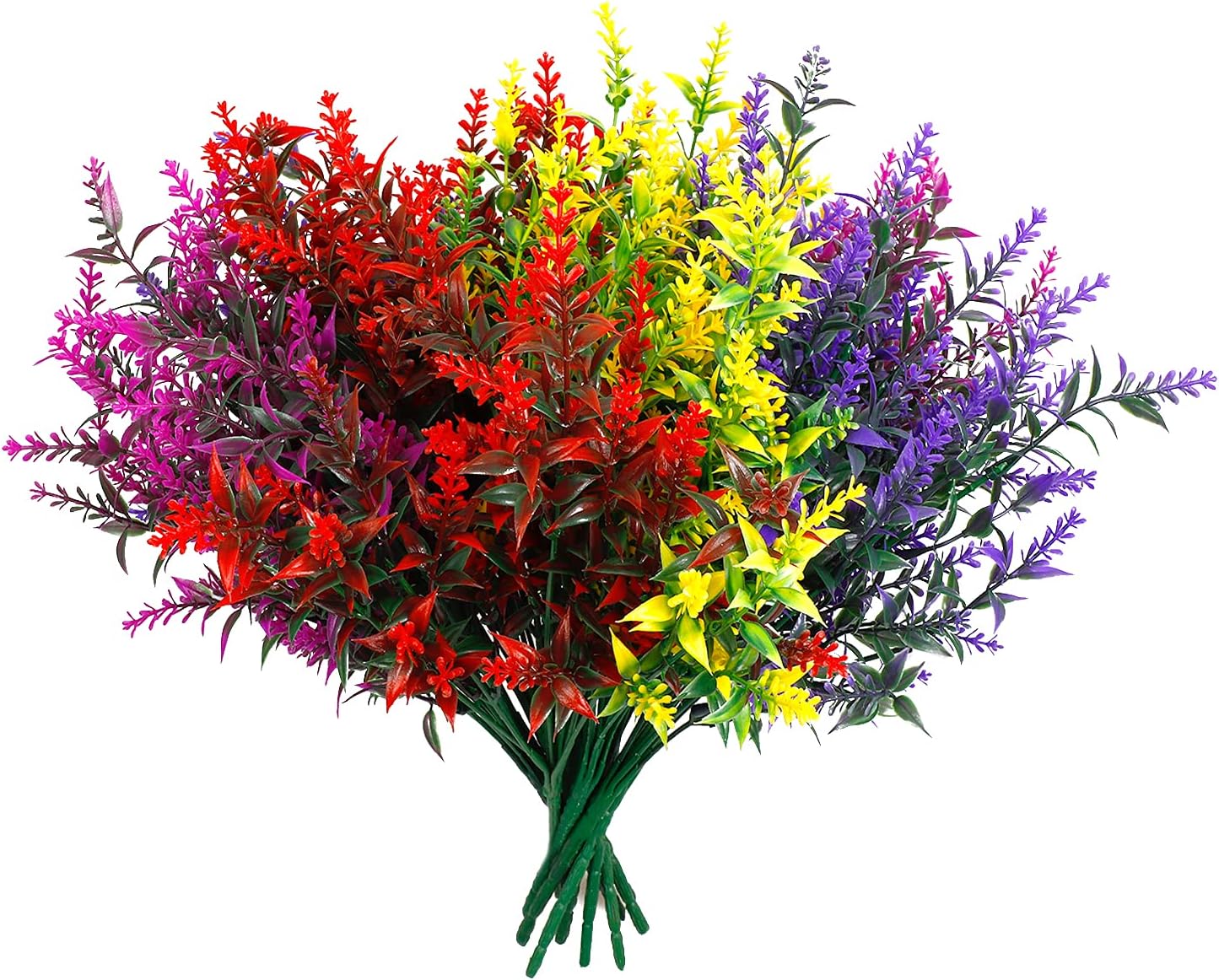 【HBell Artifcial Flower Set】include 12 Bundles faux uv-resisitant flowers,each bouquet has 7 flexible stems and bushy leaves.the lavender flowers are 14″High x 9″Wide approx,the faux flowers add a full of vitality to your garden,kitchen, windowsill,living room, dining table and bedroom.