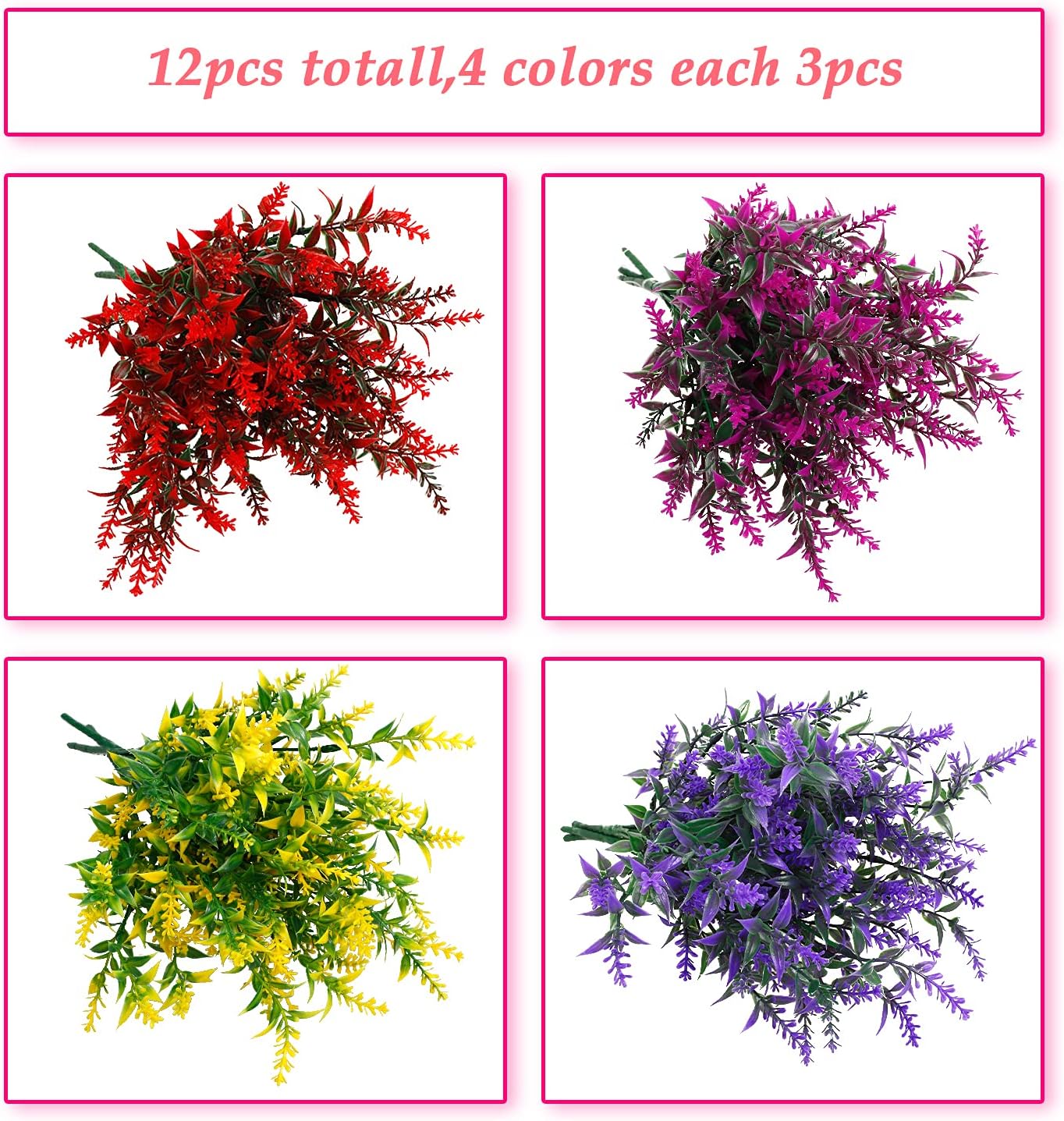 UV Resistant– Plastic plants is uv resistant and never fade, Upscale look faux flowers are perfect for any DIY project. This bushes will never die off and easy take care of it can against rainstorm and insolation.