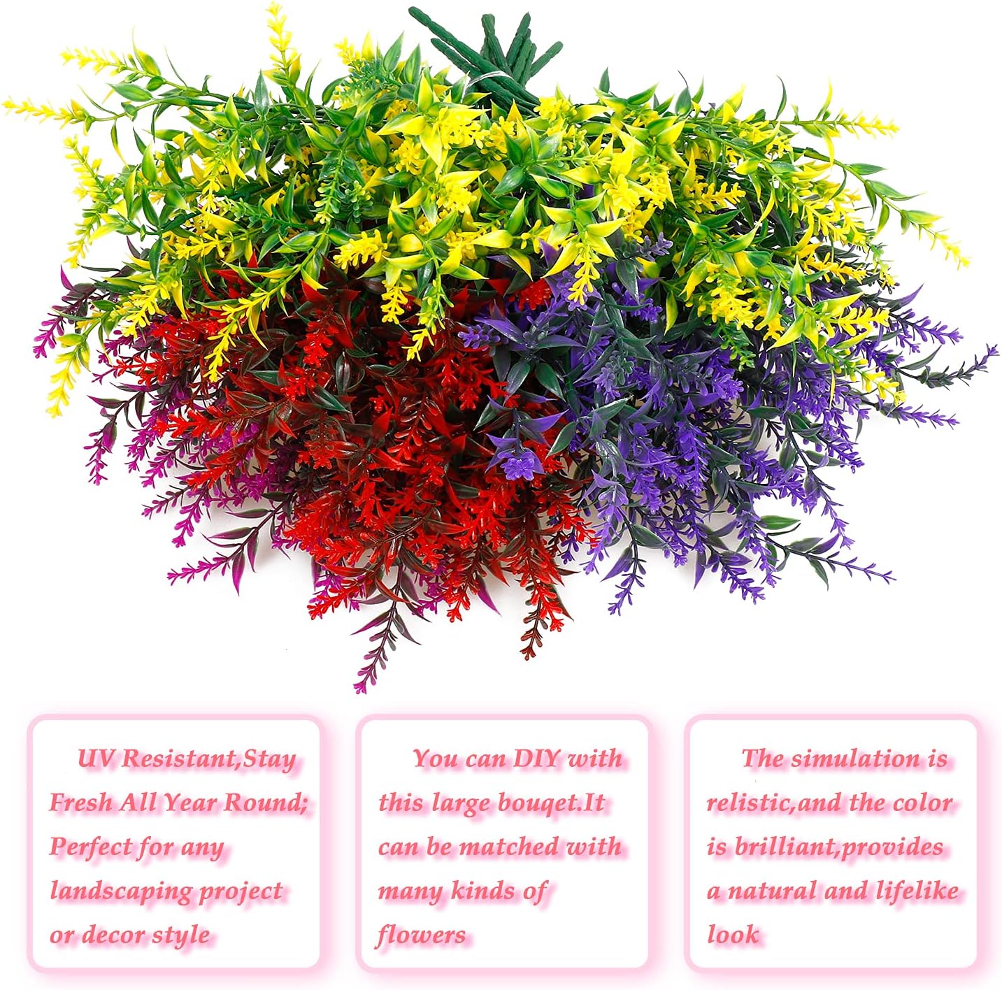 【Realistic and Perfectly】Each bundle of lavender gives the appearance of a real,natural flower.Artificial outdoor flowers are a practical alternative to real florals and will remain fresh-looking and beautiful year after year.