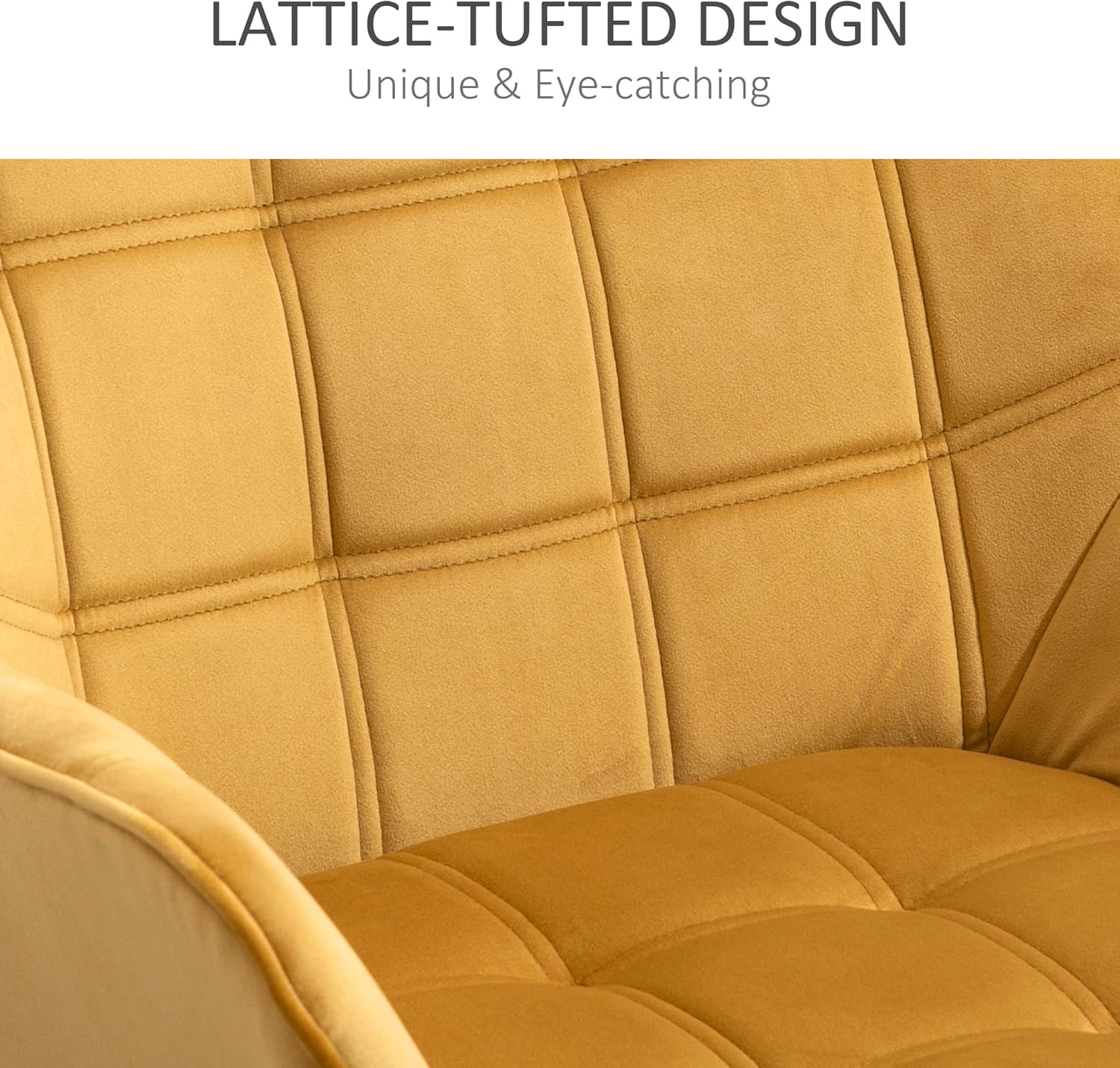 HOMCOM Armchair Accent Chair, Vanity Chair with Wide Arms, Slanted Back, Padding, Metal Frame, Wooden Legs, Home Bedroom Furniture Seating, Yellow