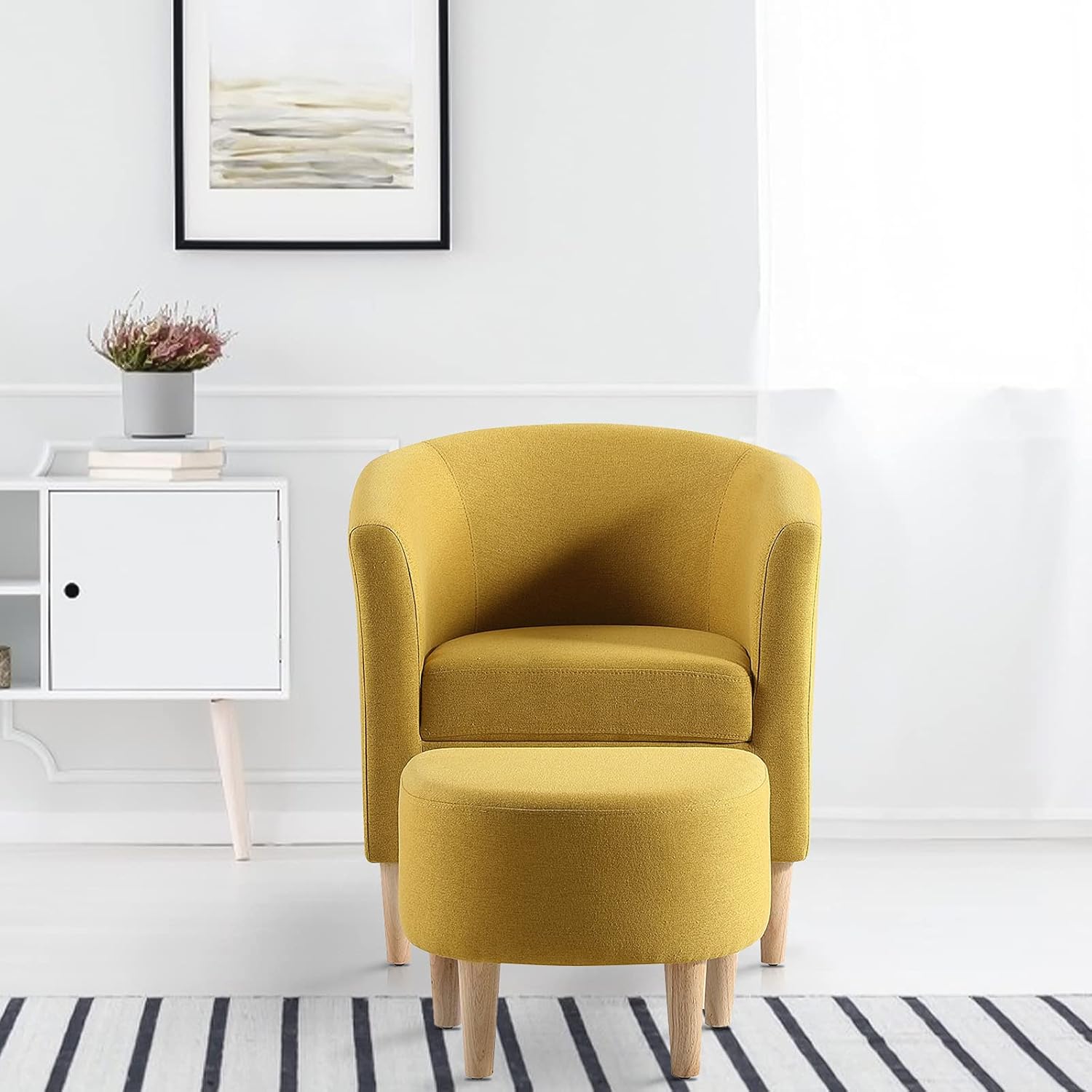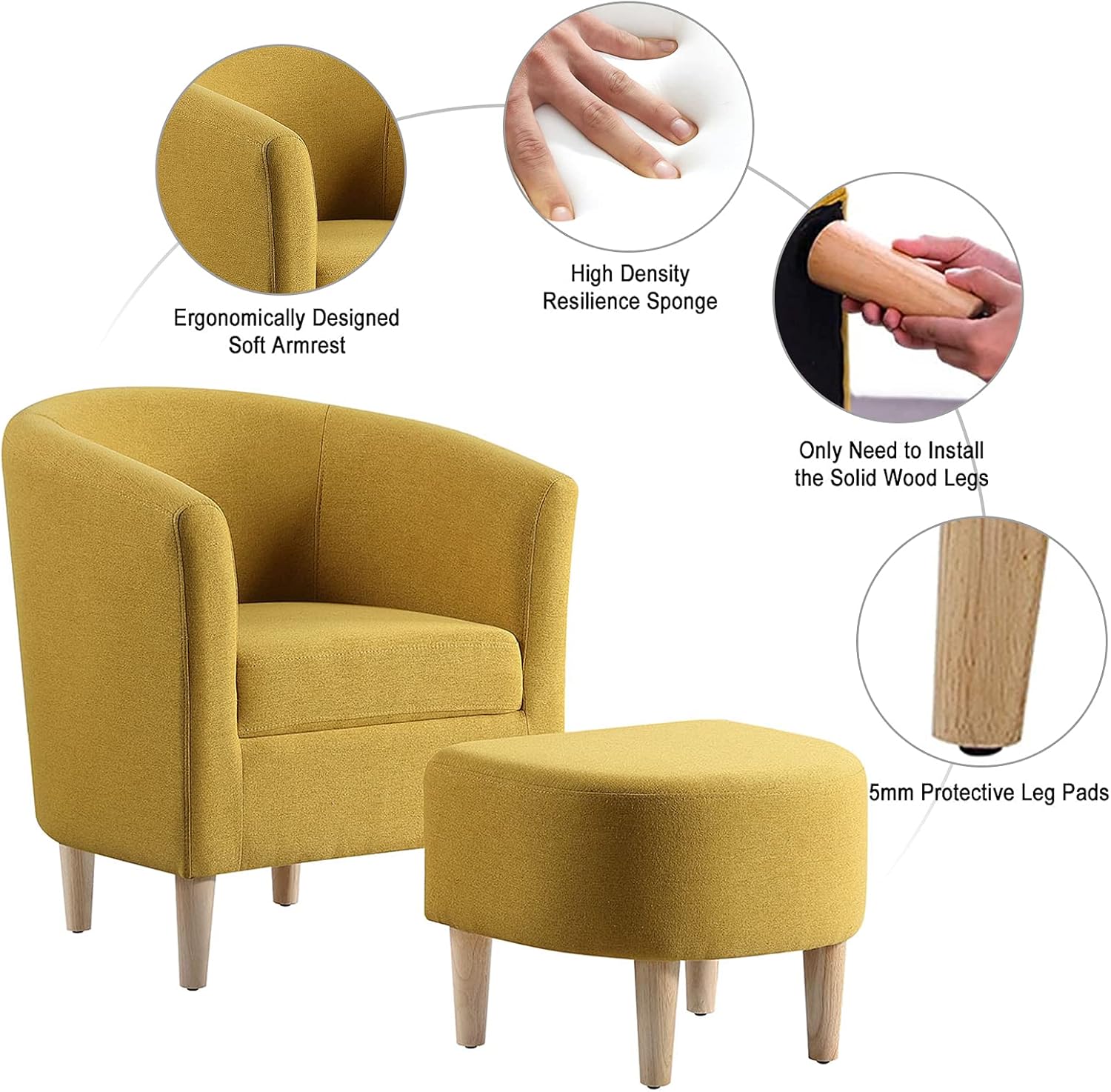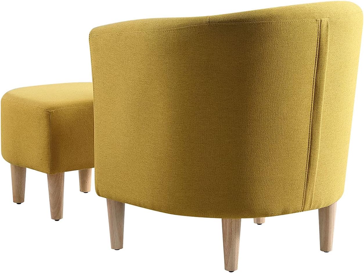 Marketero Armchair and Ottoman Accent Tub Chairs with Upholstered, Comfy Fabric Bucket Chairs Sponge Filled, Single Cuddle Sofa Lounge Arm Chairs for Living Room Bedroom Reading Small Spaces Yellow