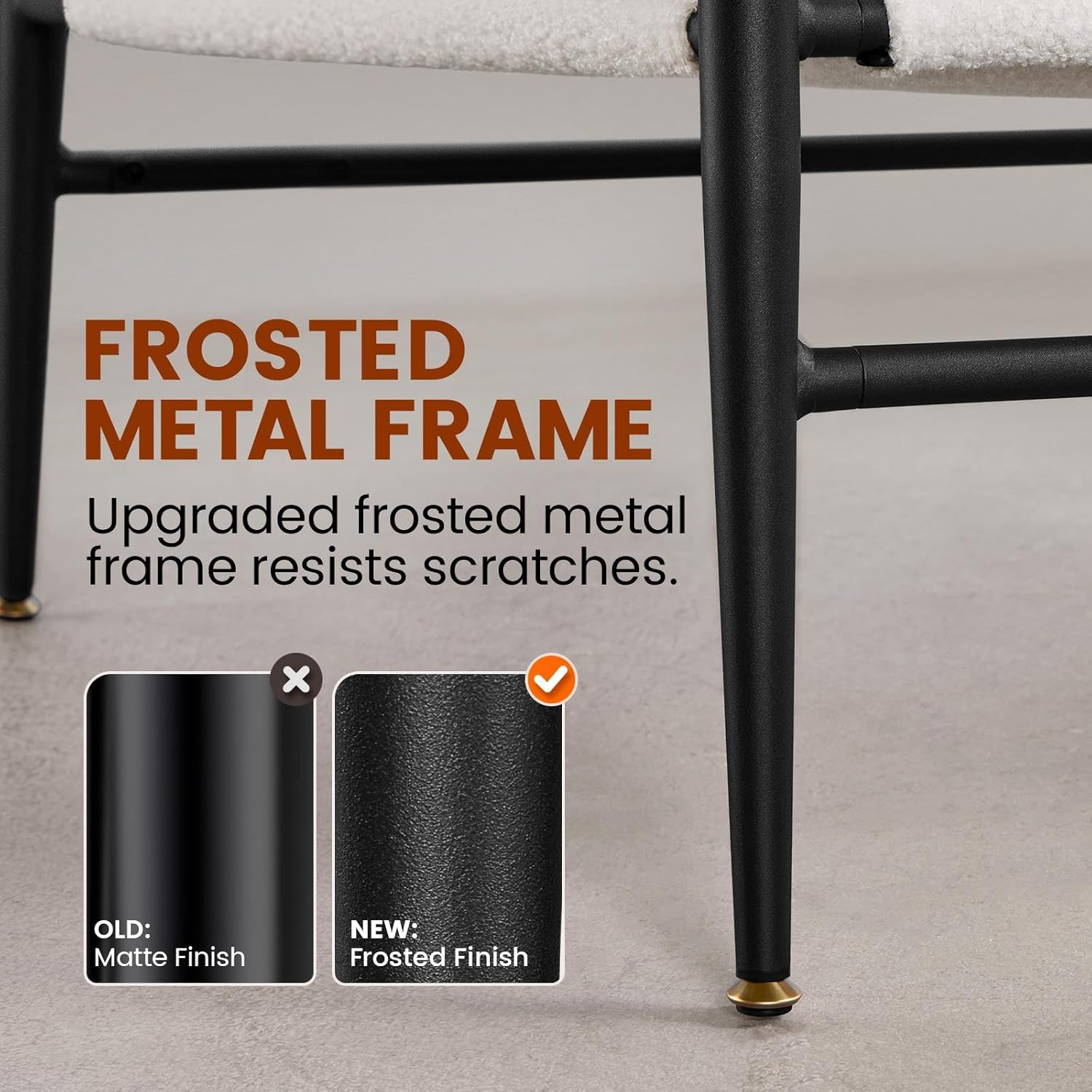 Robust Metal Support: The comfy wide seat is lofted by the metal frame with a load-bearing capacity of 135 kg maximum. The tapered metal legs with 1.2 mm wall thickness improve overall stability while adding a modern edge to your seating area