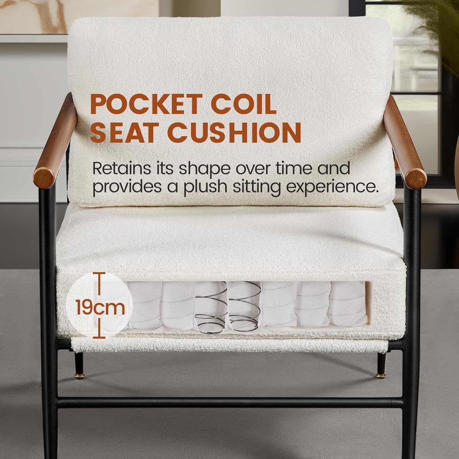 Soft Yet Supportive: The pocket coil seat has 64 individually wrapped coils and 5 cm thick high-density foam wrapped on top for maximum body support and a plush sitting experience. Lean back and rest your arms on the long, solid wood armrests—you’ve found the ideal spot to unwind, read, or watch movies