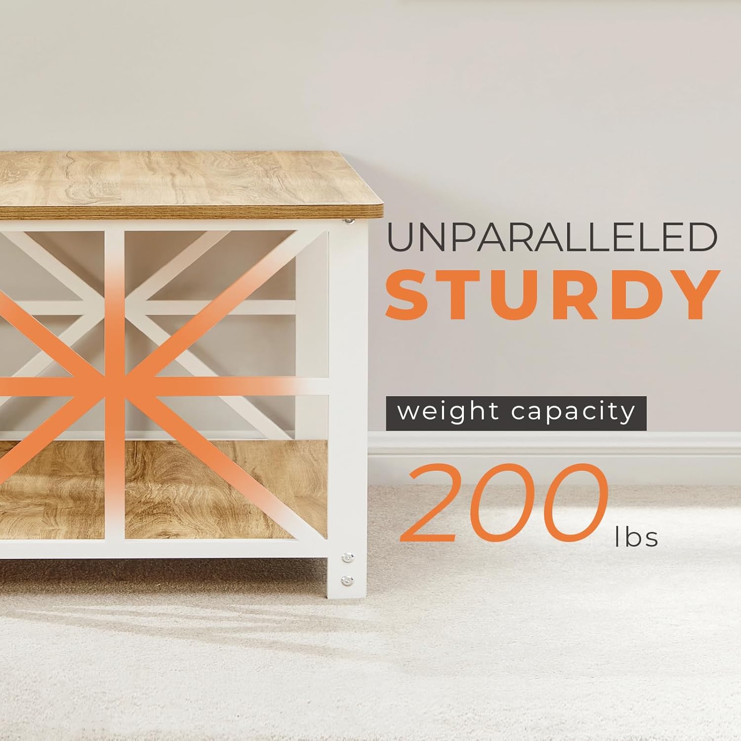 Be the first to review “GreenForest Coffee Table with 2-Tier Storage,100 cm Living Room Table with Round Corner, Center Table with X-Frame Design for Home Office,Oak”