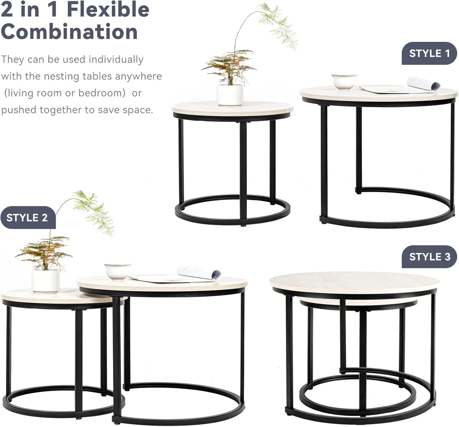 Hawthyhome Round Nesting Coffee Table Set of 2, Side Table for Living Room, Multi-functional Side table with Metal Frame, /Living Room/Bedroom White