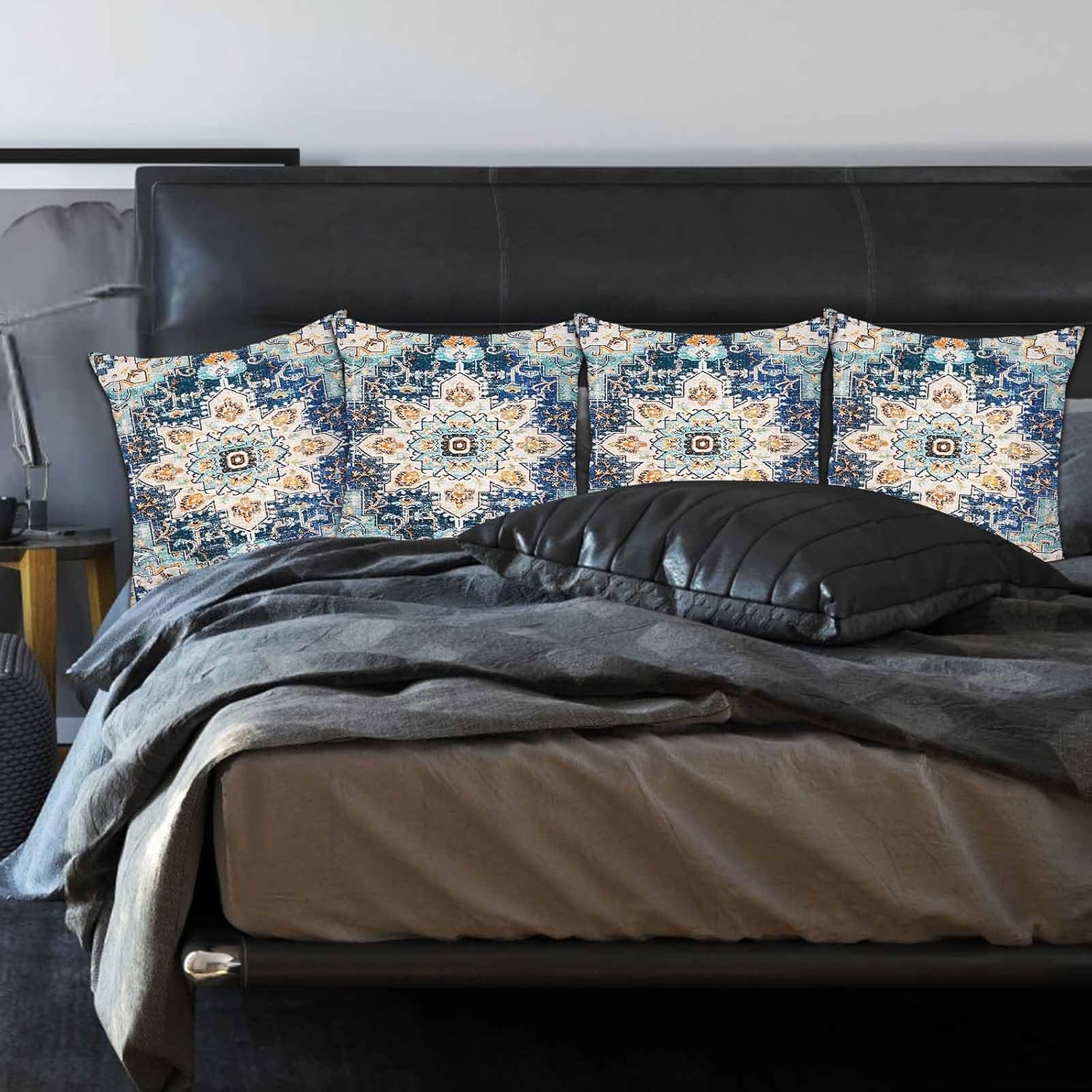 Betadistor Cushion Covers 45 x 45 cm Set of 4 Boho Decorative Square Throw Pillow Cases Country Style for Sofa Couch Livingroom Home Decor, Boho Blue, 513-0260