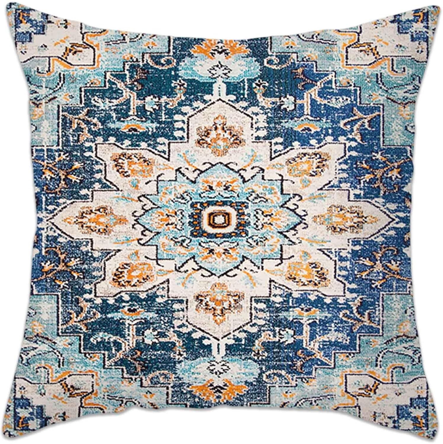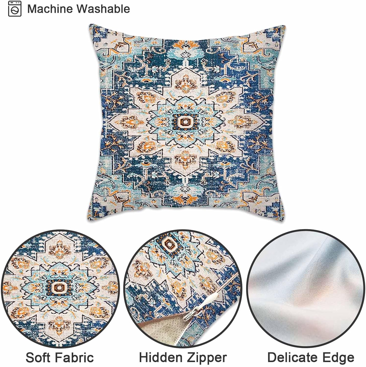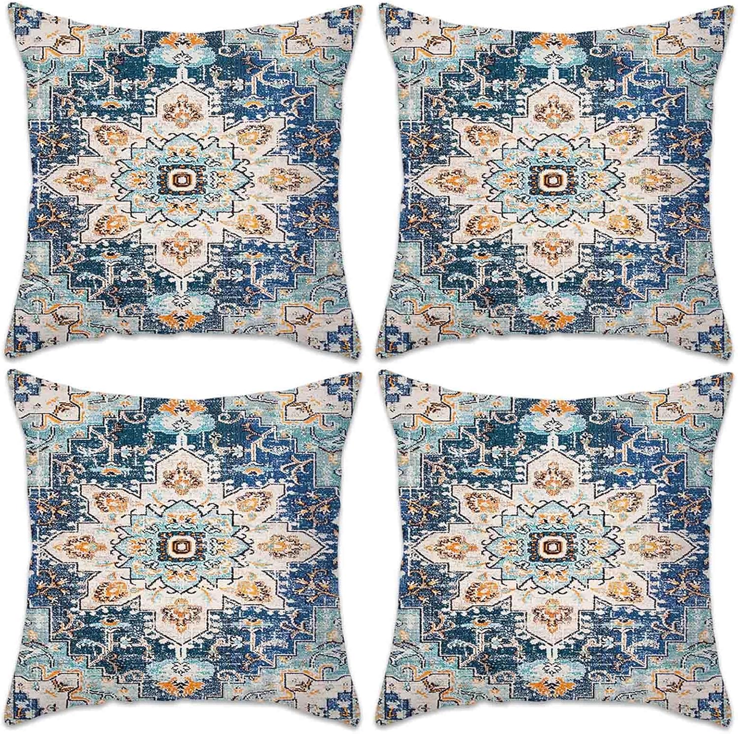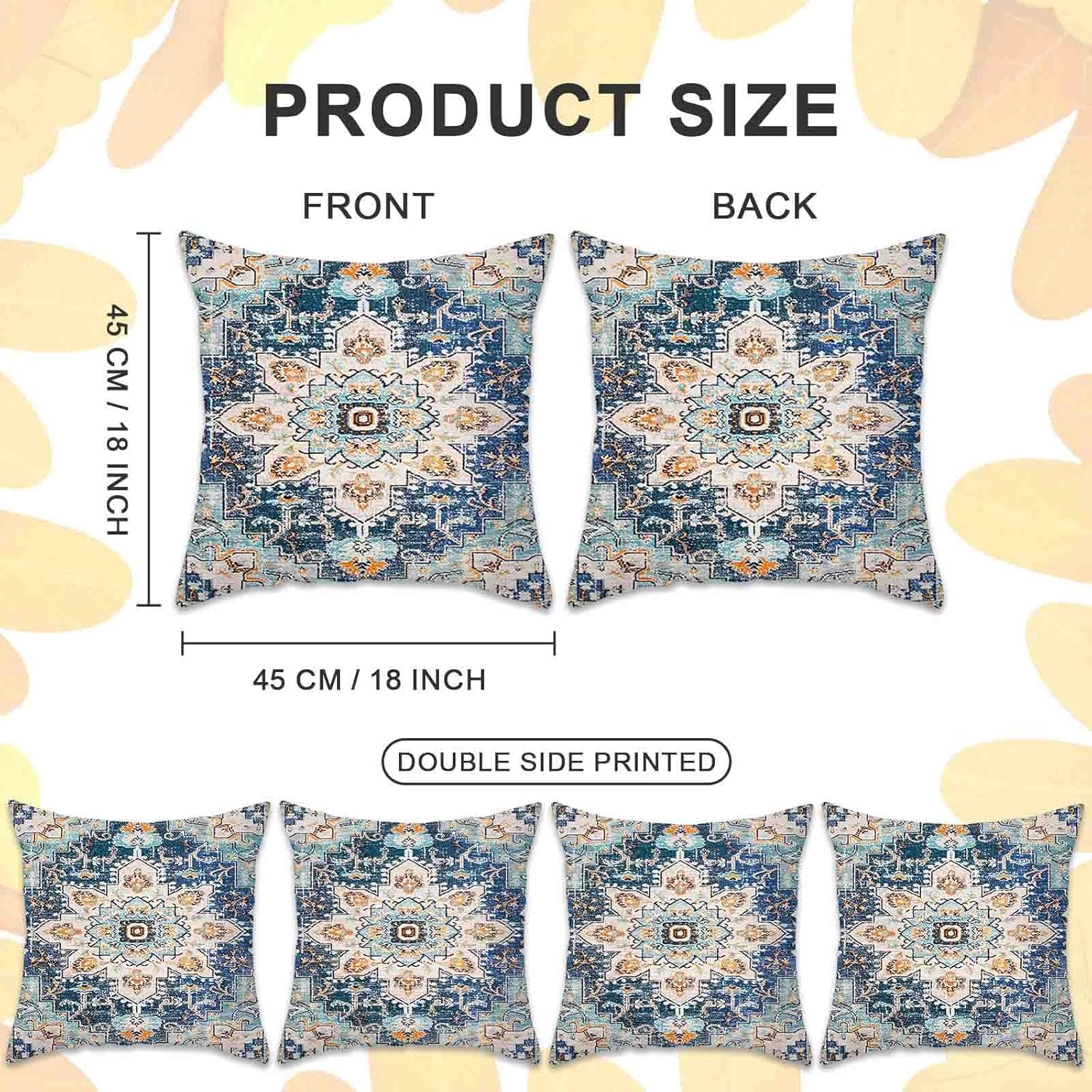 Betadistor Cushion Covers 45 x 45 cm Set of 4 Boho Decorative Square Throw Pillow Cases Country Style for Sofa Couch Livingroom Home Decor, Boho Blue , 513-0260