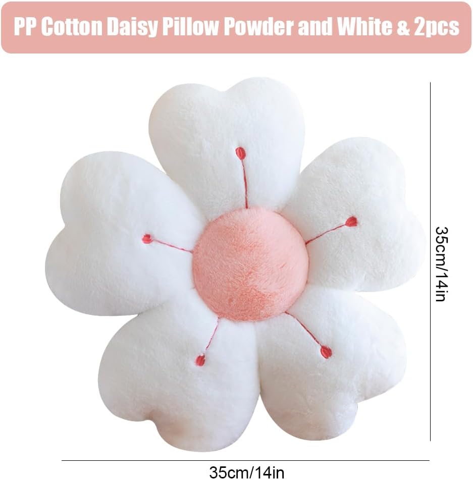 Copbopwn 2Pcs Flower Pillow 35cm – Cute Daisy Cushion, Floor Pillow, Preppy Aesthetic Home Bedroom Decor (White+Pink)