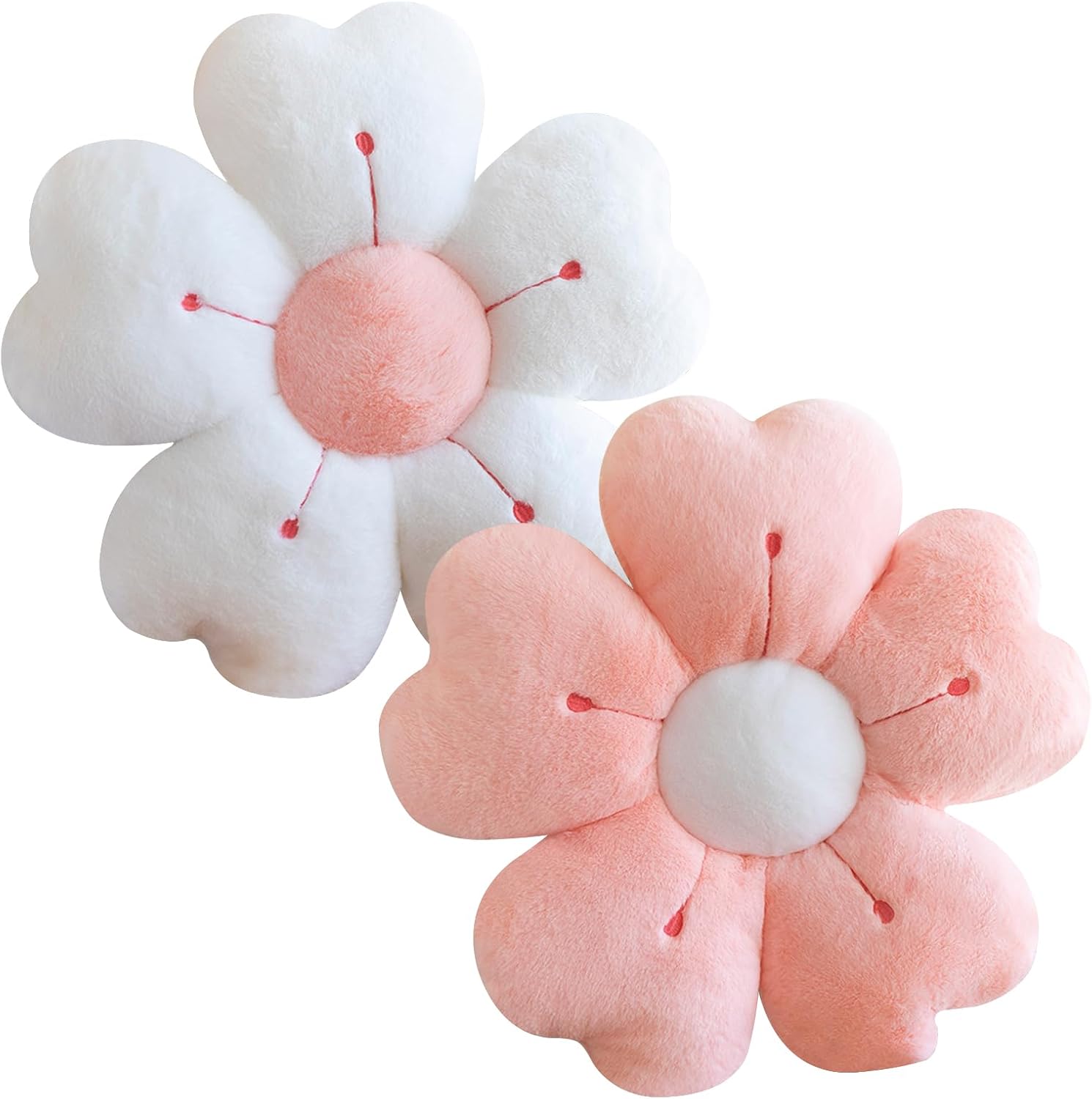 2Pcs Throw Pillow Wear Resistant Washable Non-Fading Aesthetic Flower Shaped Floor Pillow Decorative Cushion Sofa Couch Decor