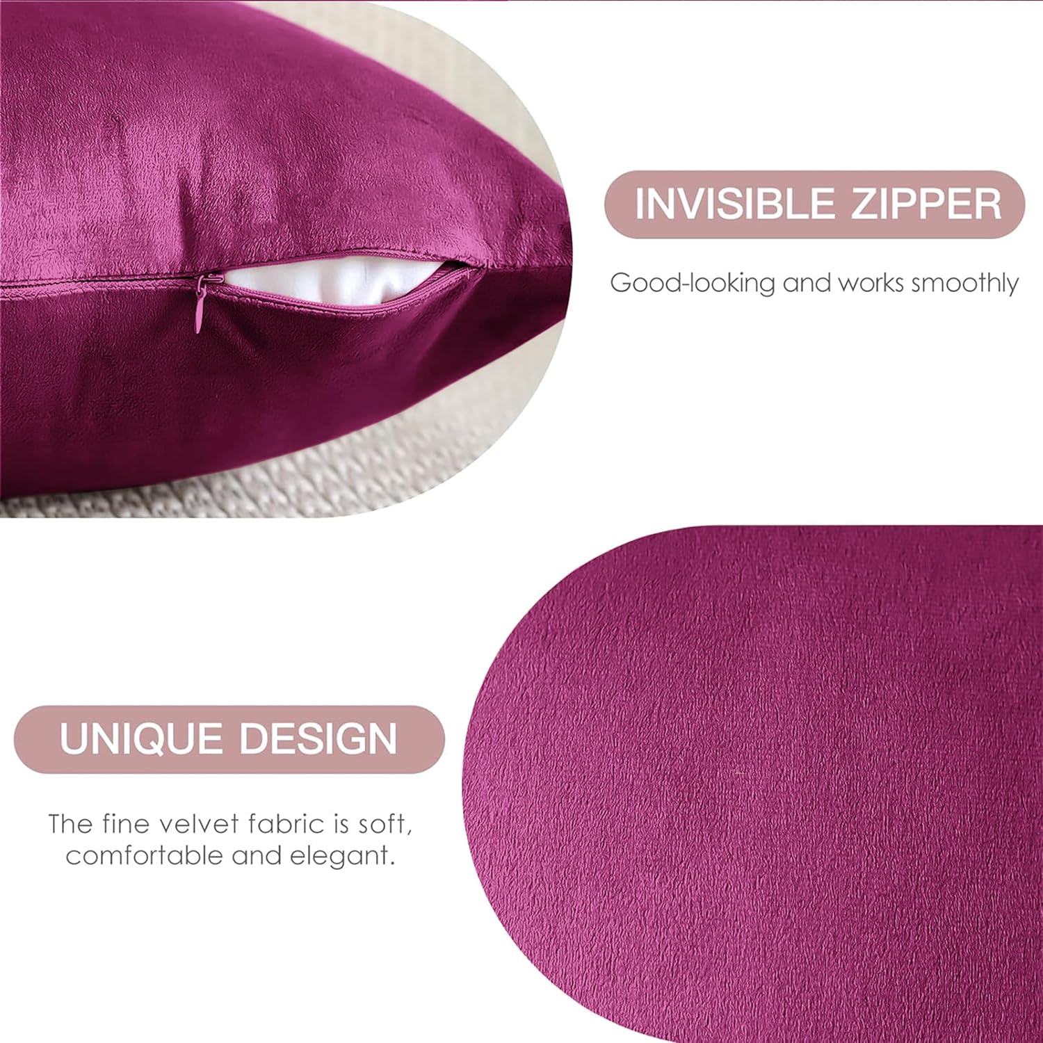My home store Velvet Cushion Covers 45 x 45 cm- 2 Pack Square Throw Pillow Cases Decorative Aubergine Cushion Covers for Sofa Bedroom Living Room with Invisible Zipper 18 x 18 Inches