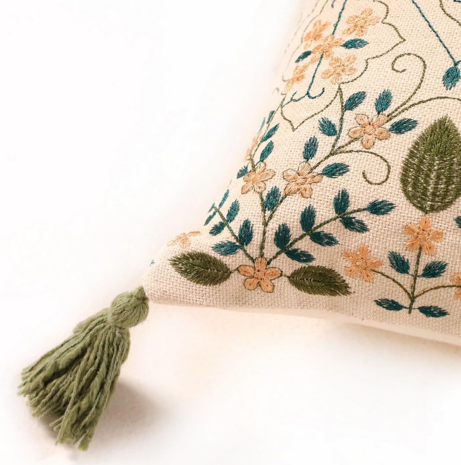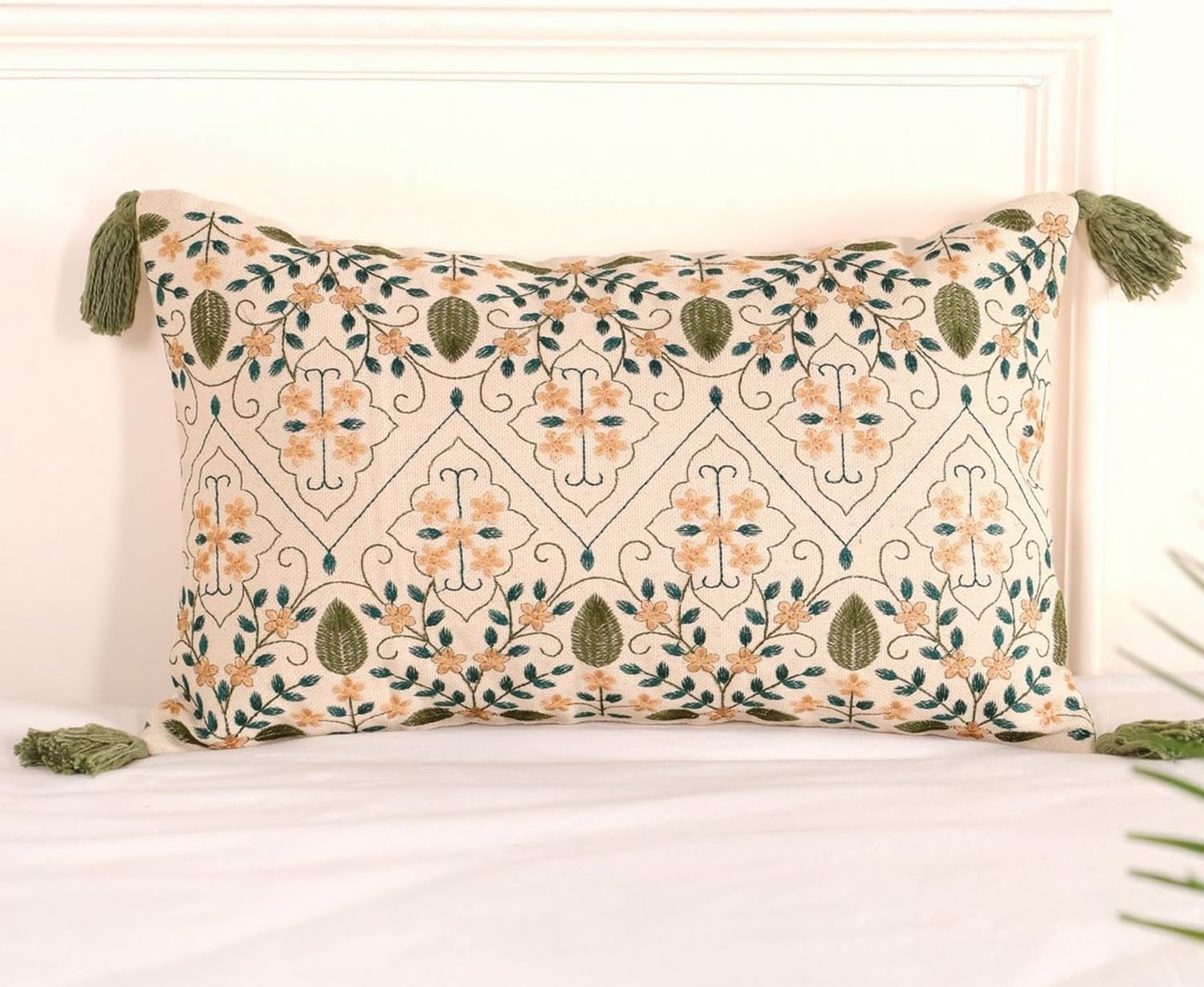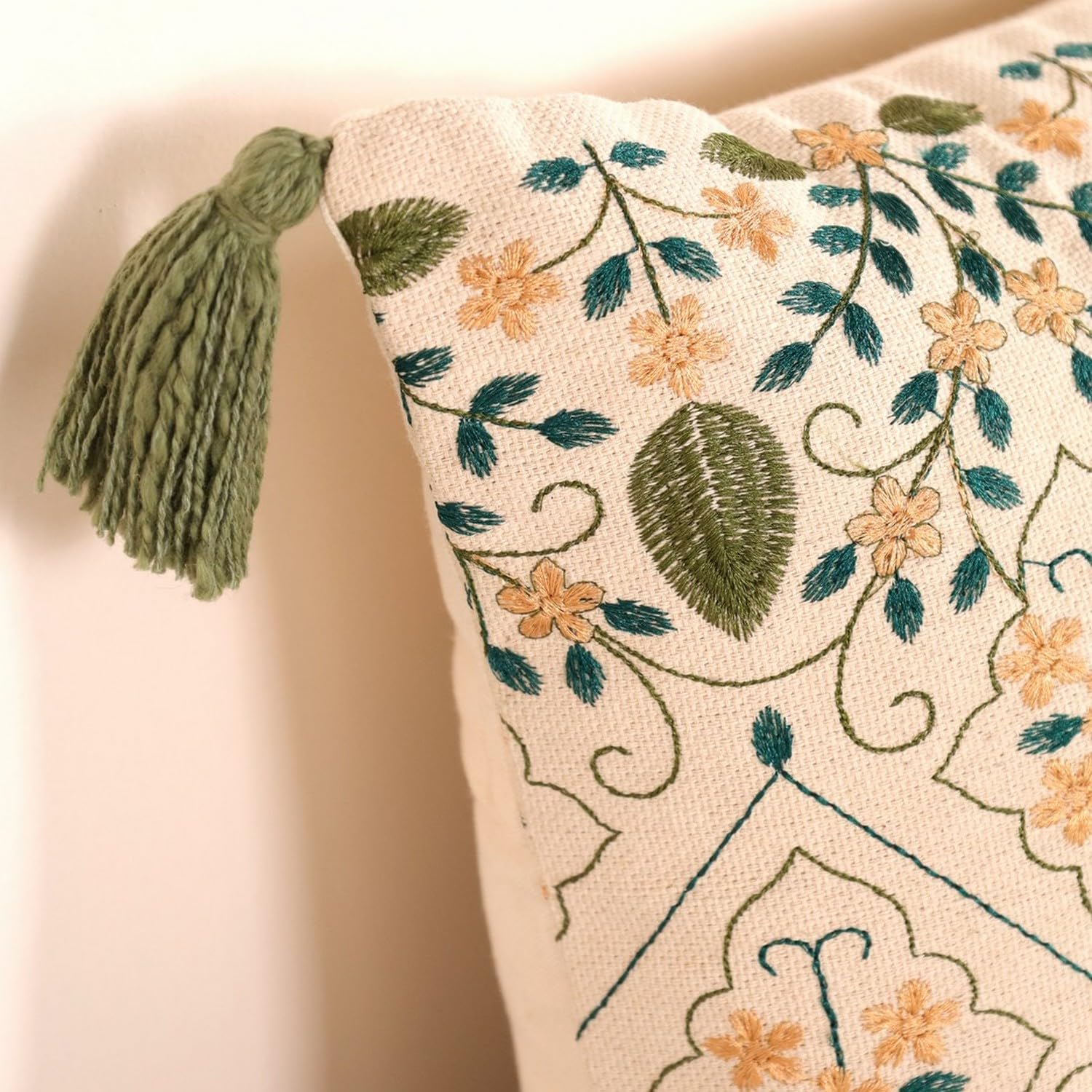 Premium, Durable Materials: Made from cotton and embroidered on one side (the back is plain), tassled and fringed in a small batch production unit in India, our cushion covers offer both durability and high quality, elevating the comfort of your home.
