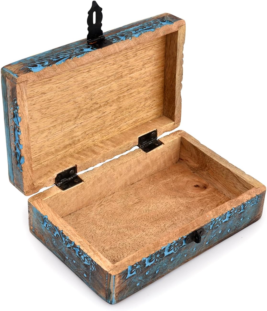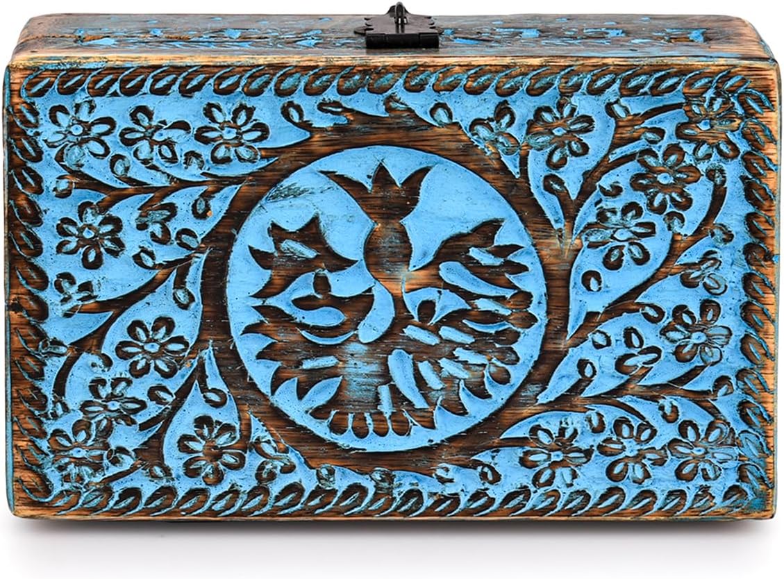 Add a unique piece to your home decor, not only practical but also stylish with this decorative blue wooden jewelry box. This unique piece features a blue painted finish and an elegant carved tree of life design giving a vintage look. This unique storage box is a perfect gift for birthdays, Christmas, Mother’s Day, wedding, engagement or any other special occasion.