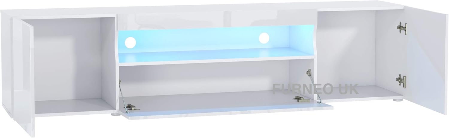 Furneo High Gloss & Matt White Living Room Set TV Stand Display Cabinets ArtClif8 Blue LED Lights