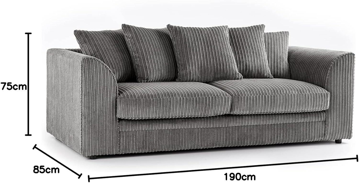 New Luxor Fabric Sofa Suite 3 Seater and 2 Seater Soft Jumbo Cord Sofa Set For Living Room (Grey)
