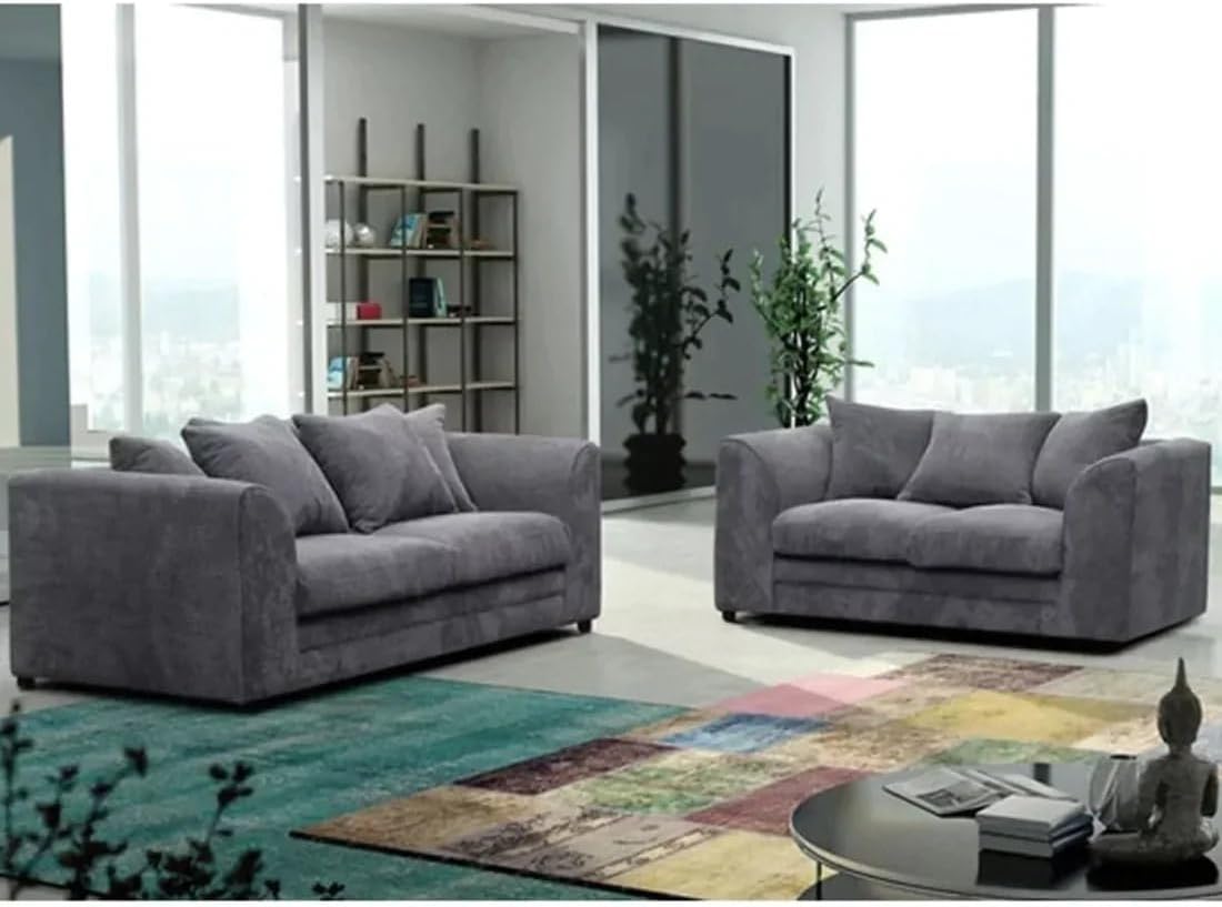 Settee Grey Sofas – Comfy 3 Seater 2 Seater Suite – Upholstered Fabric Sofa and Couch Set – Value Dual Arm Corner Sofa – 5 Seater Sofa for Living Room Lounge (Casper Kensington, Grey)